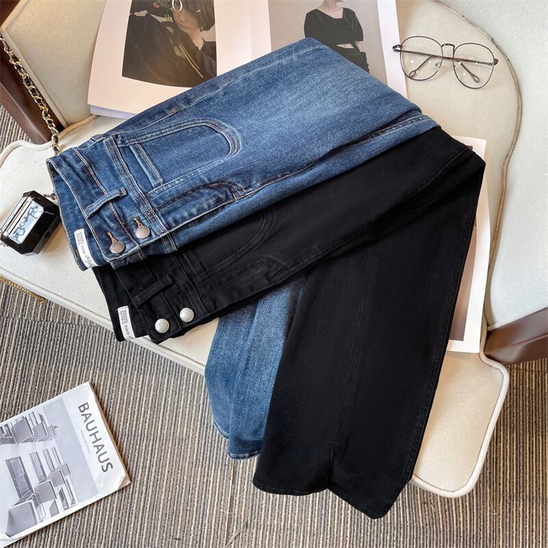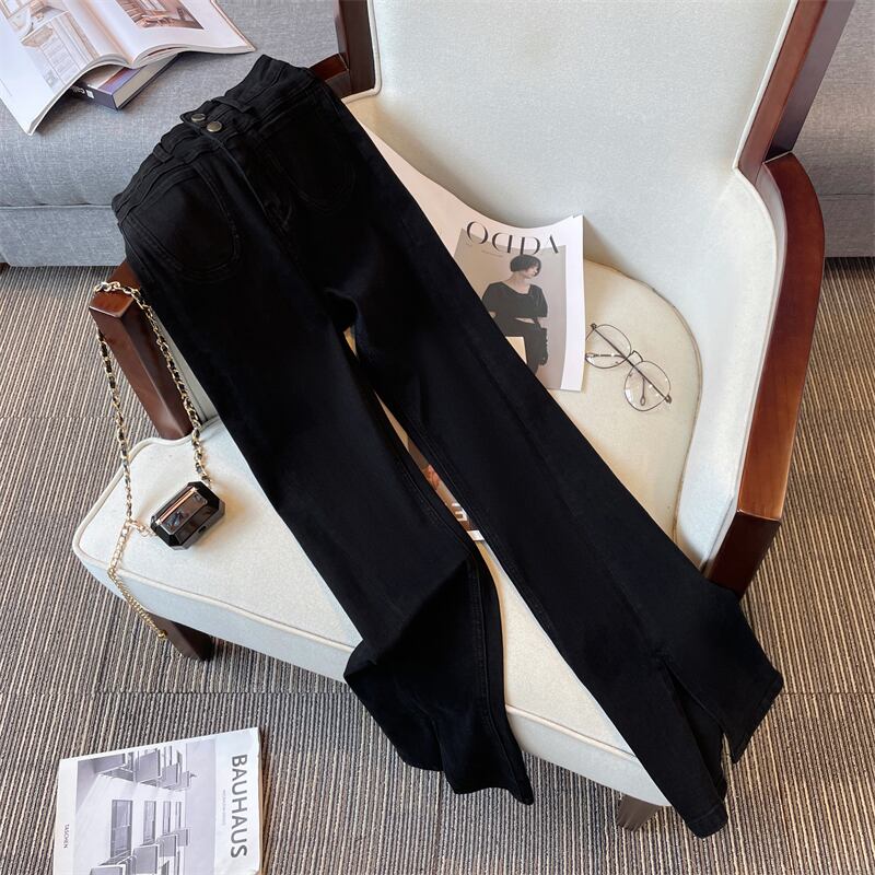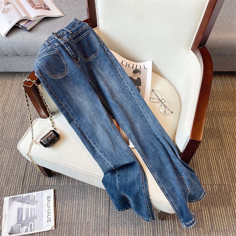 プラスサイズの婦人服2023春の新しいスタイルの太った姉妹は、薄いデザインのファッション気質のオールマッチ無地デニムパンツに見えます 大きめサイズ スプリング 春物 ソリッドカラー 8884192796847531