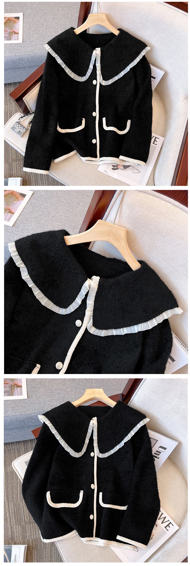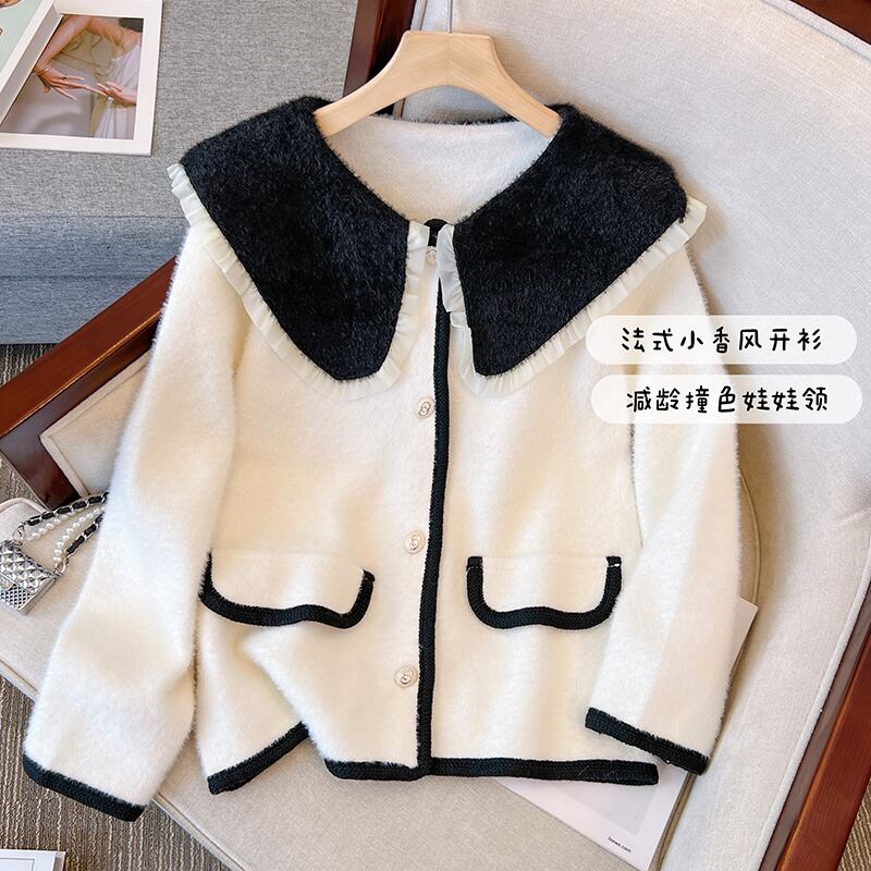 プラスサイズの婦人服 2023 春の新ファットシスターファッションデザインセンスカジュアル人形の襟カーディガントップ女性 大きめサイズ スプリング 春物 8884197354366894