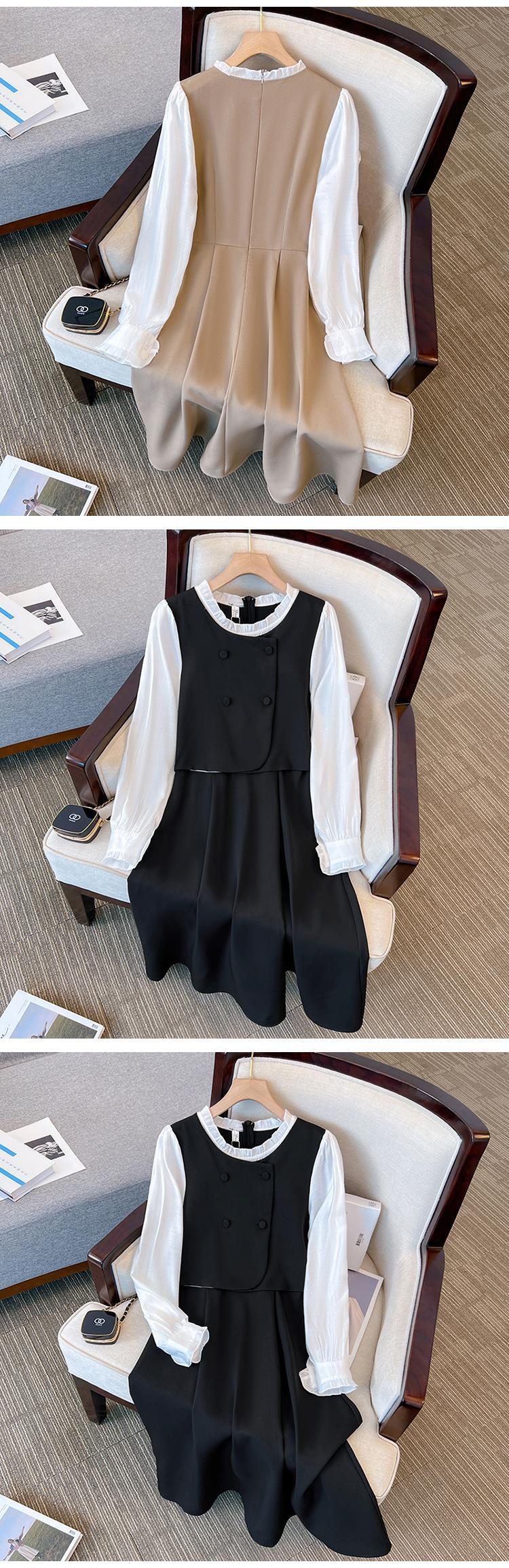 プラスサイズの婦人服 2023 春の新しいファットシスターフレンチスタイルのシックなウエスト痩身フェイクツーピースの年齢を減らすドレス 大きめサイズ スプリング 春物 8884167877810424