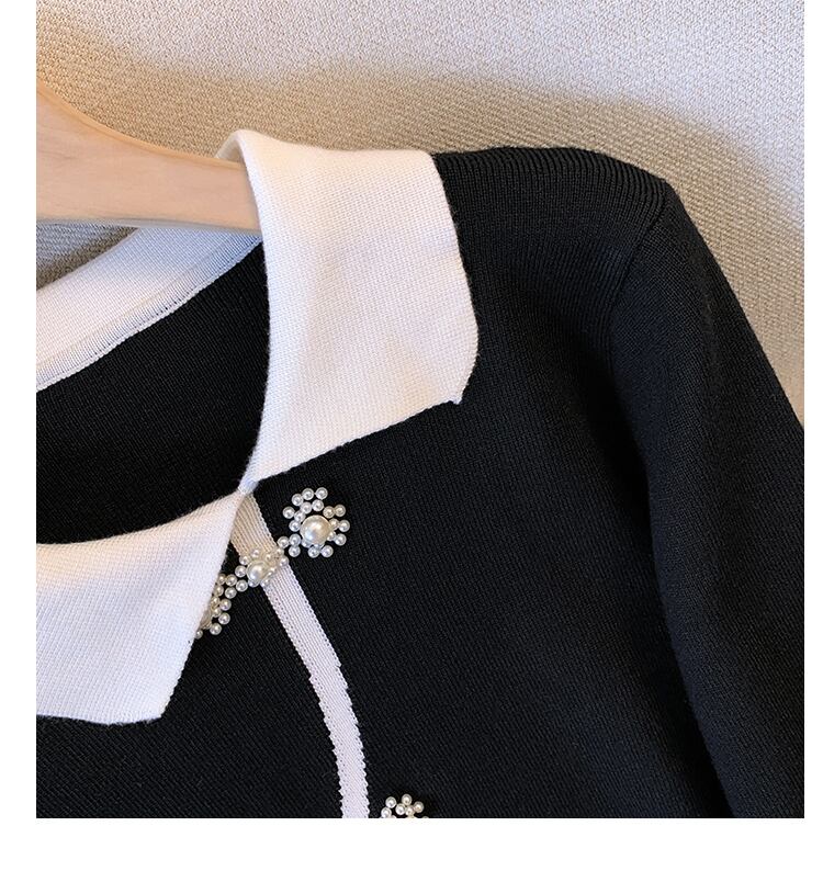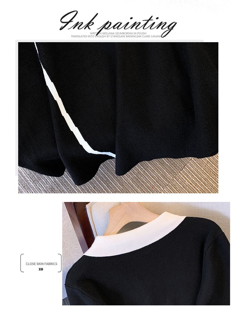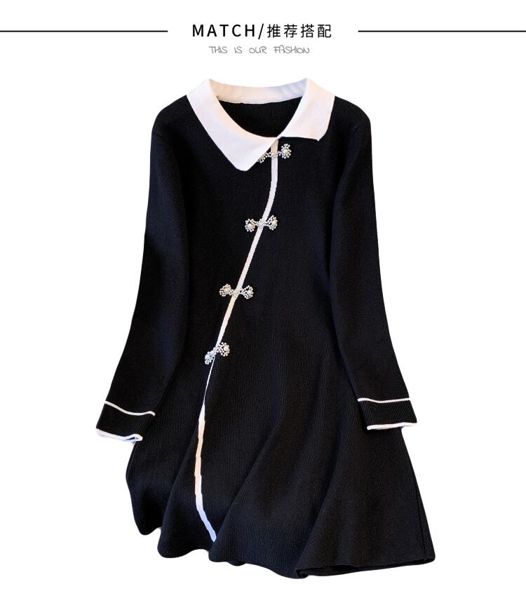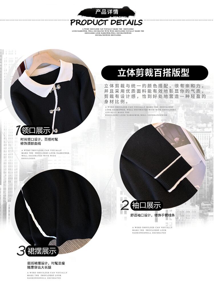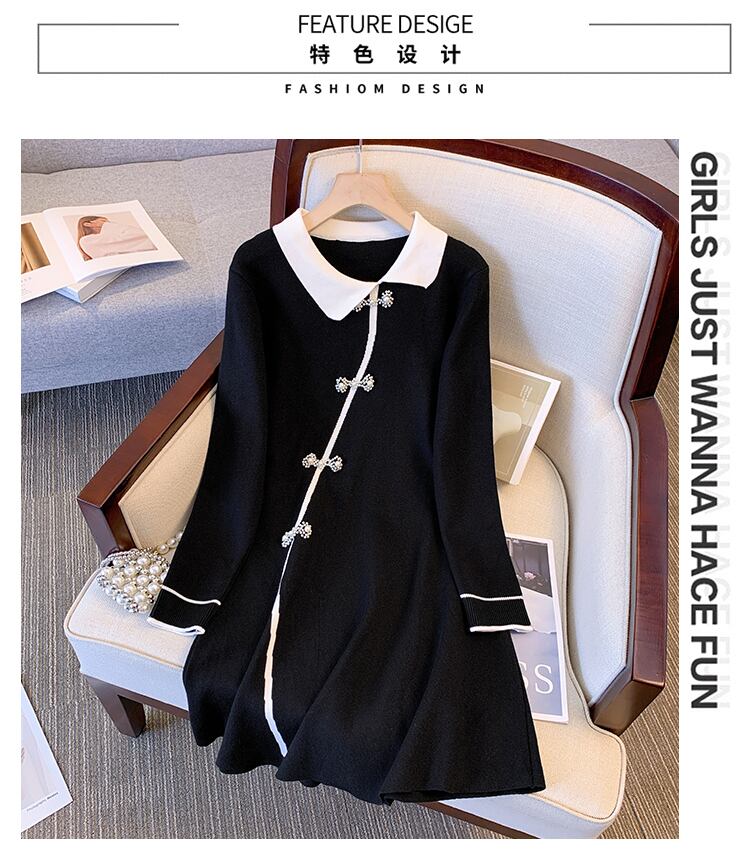 プラスサイズの婦人服 2023 ファットシスター春の新しい人形の襟バックルコントラストカラー厚いセーター底入れドレス 大きめサイズ スプリング 春物 888418793505962