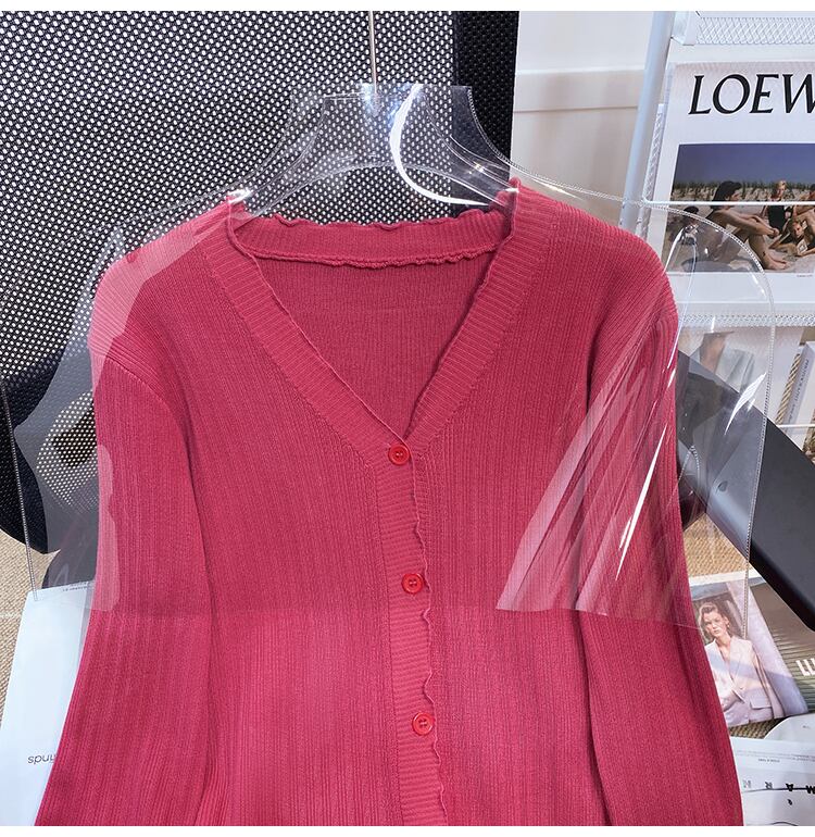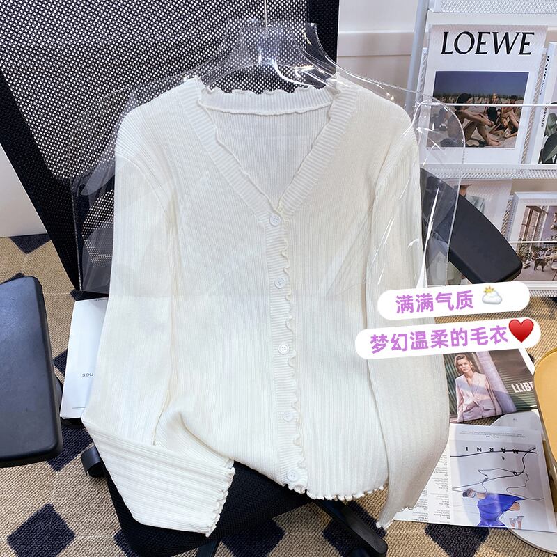 プラスサイズの婦人服2023春の新しいファットシスターフレンチスタイル無地eignスタイルルーズで薄いカジュアルVネックセーター 大きめサイズ スプリング 春物 ソリッドカラー 8884188370287362