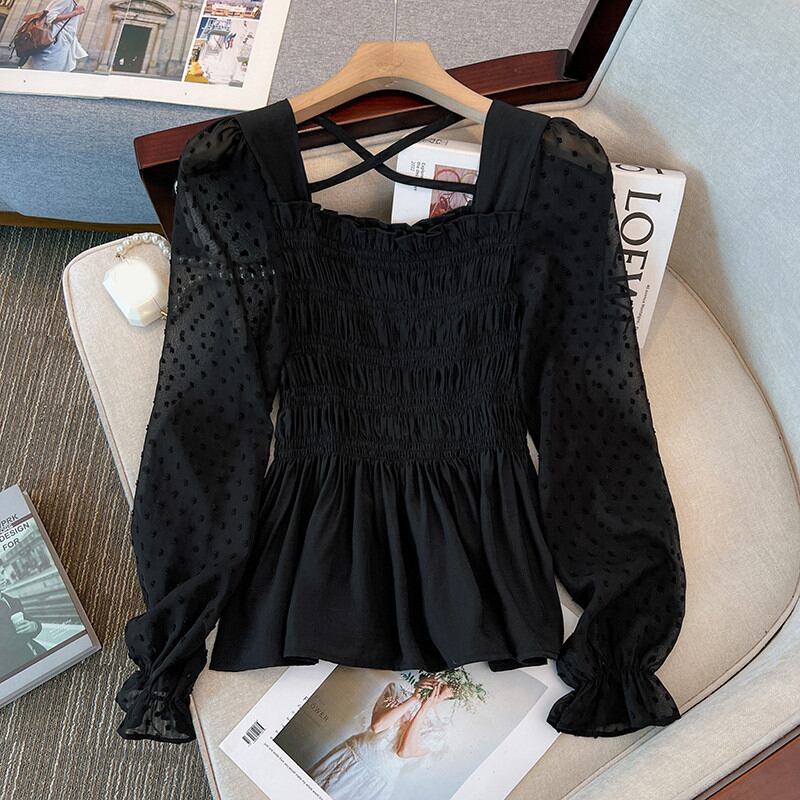 プラスサイズの婦人服 2023 ファットシスター春の新フリルトランペットスリーブシフォンシャツ eign スタイルホルタートップ女性 大きめサイズ スプリング 春物 8884165877425805