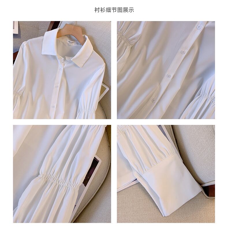 大きいサイズの婦人服 2023 春服脂肪姉妹新しいシャツ フリル無地ベルト ダイヤモンド サスペンダー スカート ツーピース スーツ 大きめサイズ スプリング 春物 ハーネス ソリッドカラー 8884194172565171