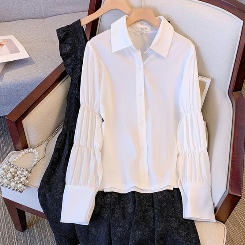 色:白のシャツ,ラッフルサスペンダースカート