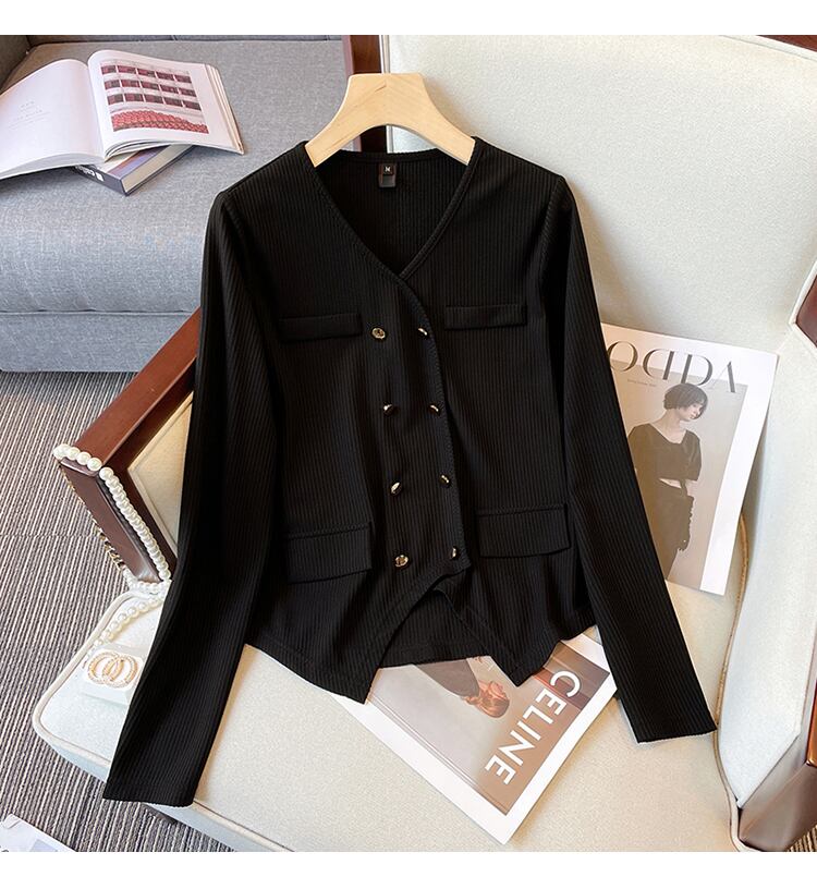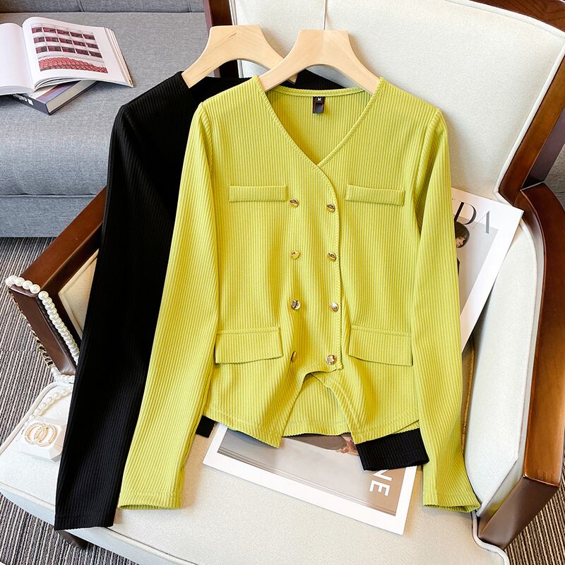 プラスサイズの婦人服 2023 春太った姉妹新しいファッションオールマッチ年齢を減らす薄い V ネックカーディガン長袖トップの女性 ロング 大きめサイズ スプリング 春物 Vネック 8884188886804355