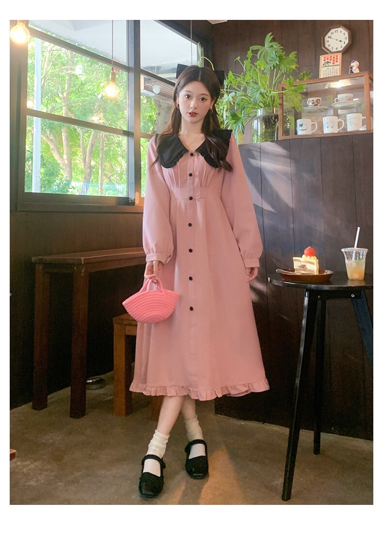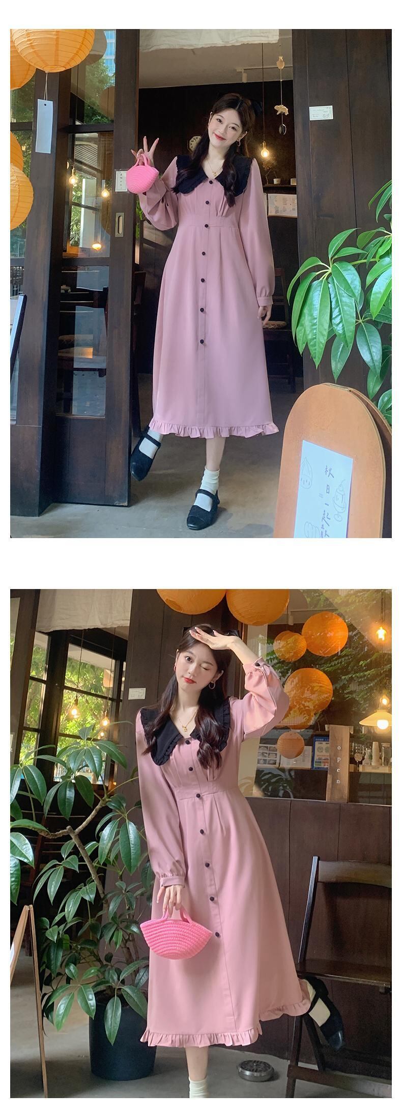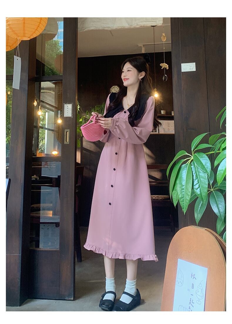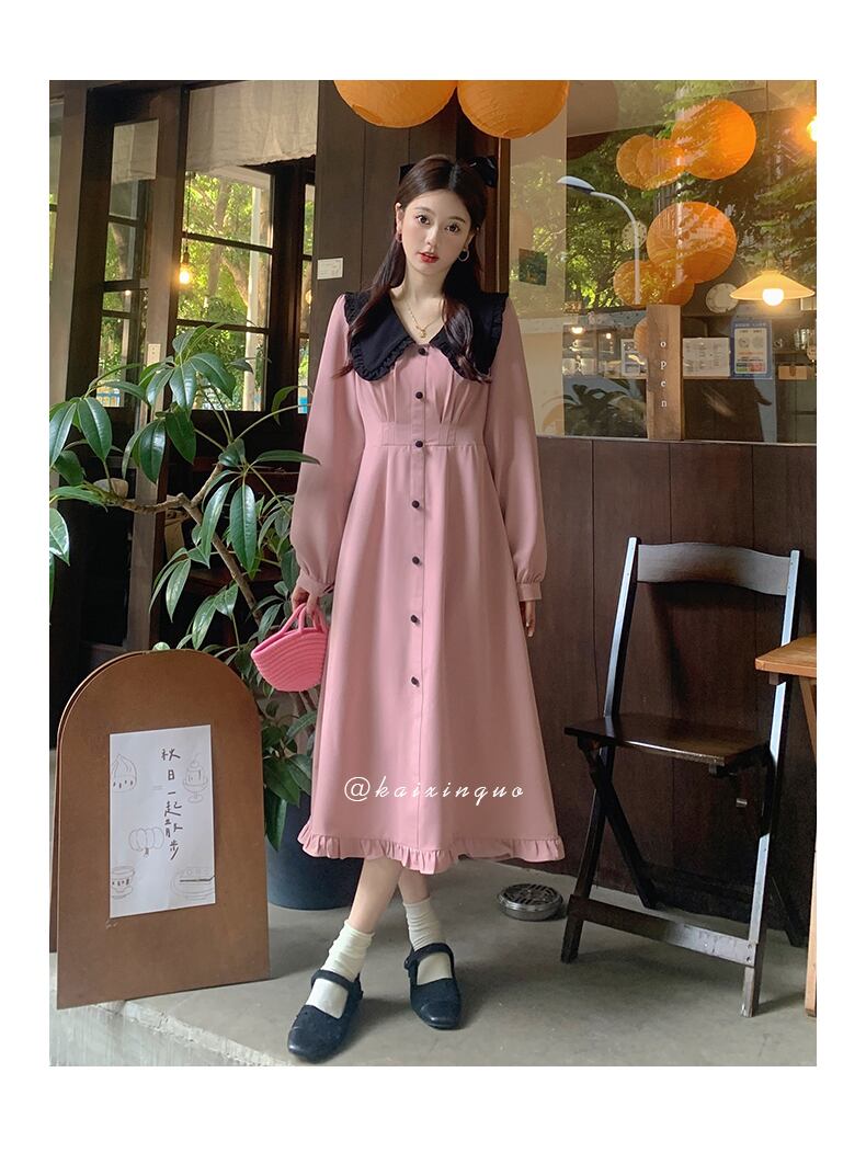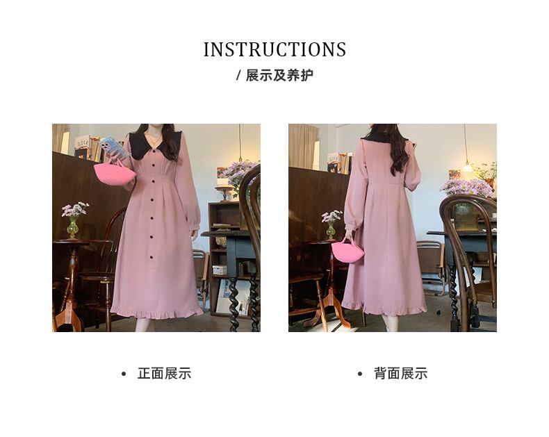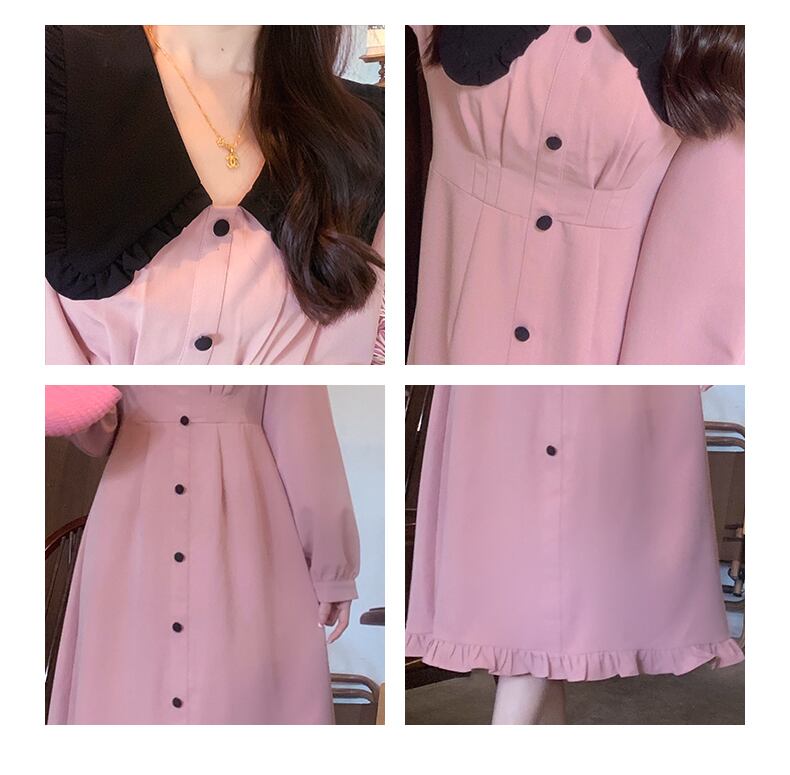 プラスサイズの婦人服 2023 春服脂肪姉妹新しい甘くてスリムなフリルスカート無地長袖ドレス女性 ロング 大きめサイズ 大人ガーリー スウィート キュート カジュアル スプリング 春物 ソリッドカラー 888417079080537