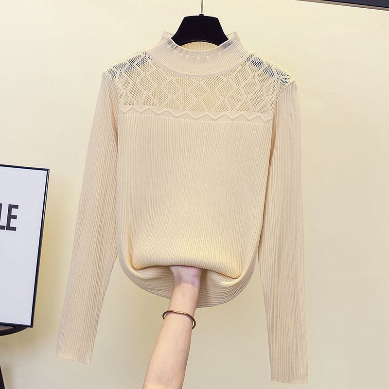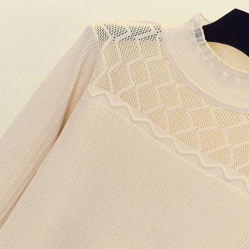 プラスサイズの婦人服 2023 トレンディな女性の春の新しいファットシスターファッション無地 eign スタイルレースステッチ底入れニットセーター女性 大きめサイズ スプリング 春物 ソリッドカラー 888418544906741