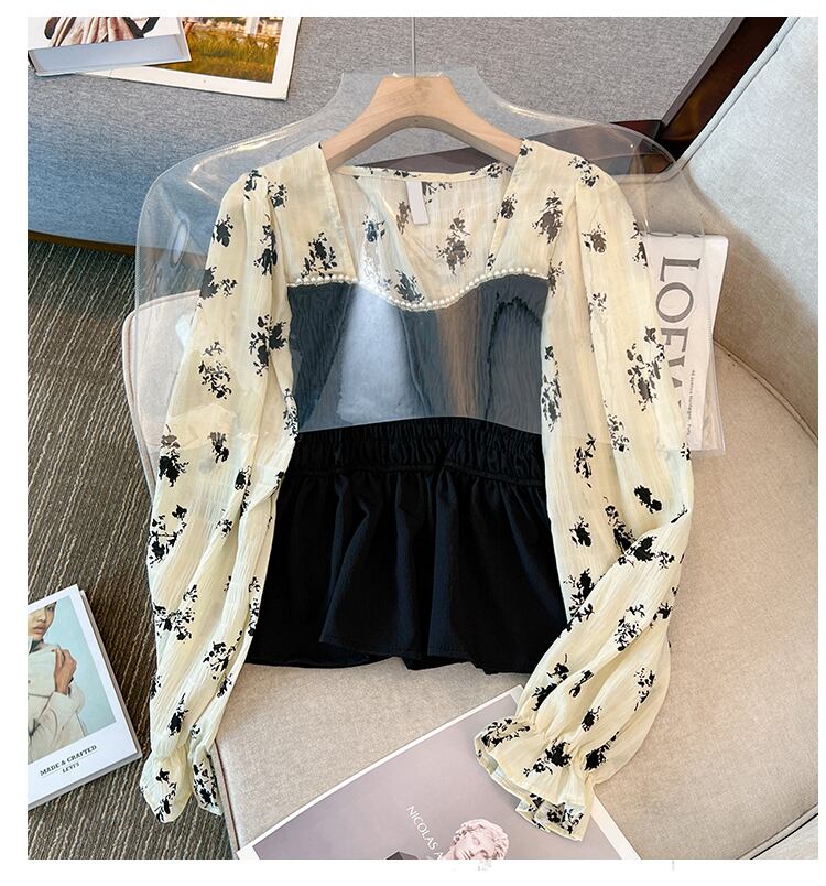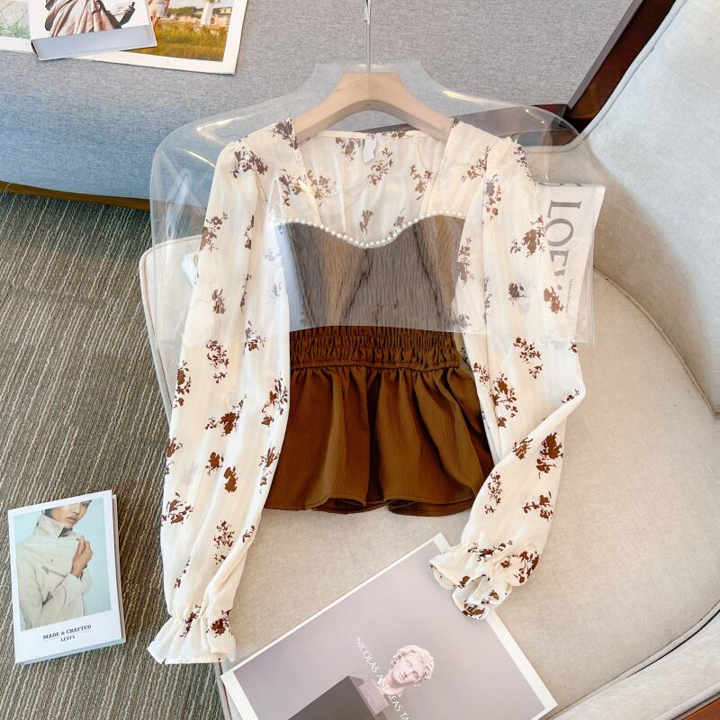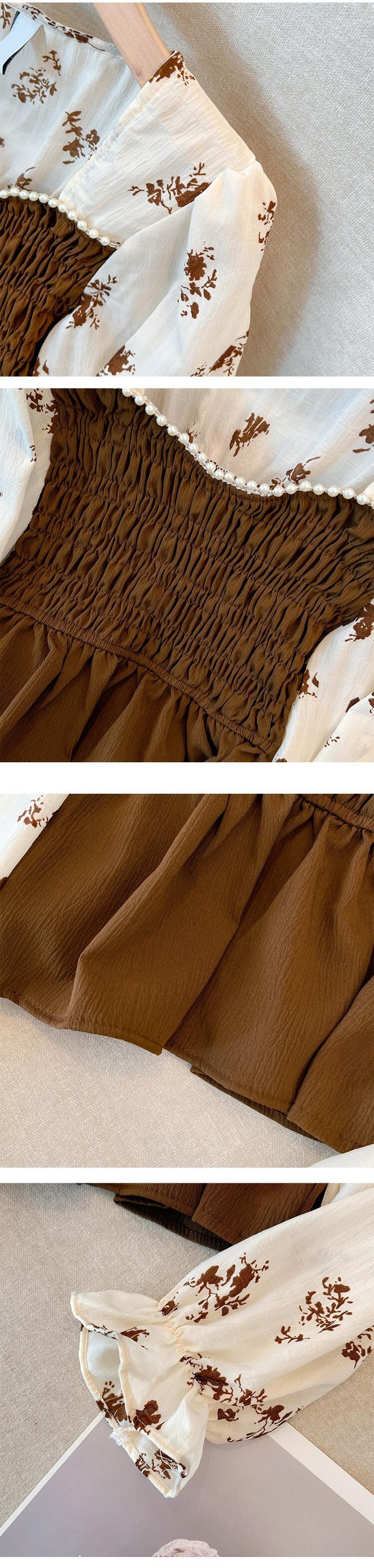 大きいサイズの婦人服 2023 春服脂肪姉妹新しいレトロなステッチ長袖シャツ ウエスト スリム花柄花柄トップ ロング 大きめサイズ スプリング 春物 8884156246316946