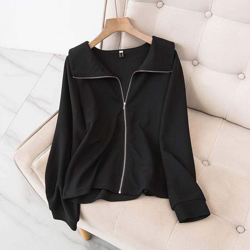 プラスサイズの婦人服 2023 ファットシスター春の新気質カジュアルジッパーカーディガンセーター痩身オールマッチコート女性 大きめサイズ スプリング 春物 8884158803321308