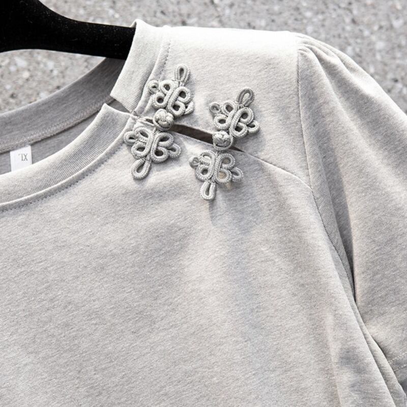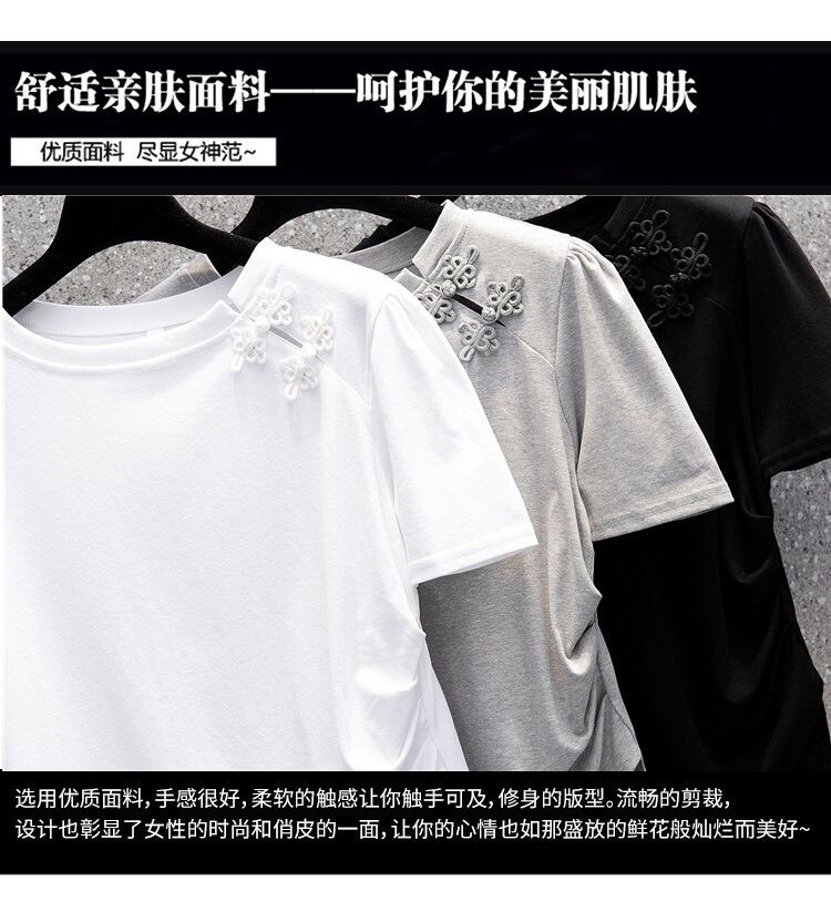 プラスサイズの婦人服2023トレンディな女性の夏の新しい太った姉妹は、薄くて高級な夏のフレンチデザインの半袖Tシャツに見えます 大きめサイズ サマー 夏物 8884115503583231