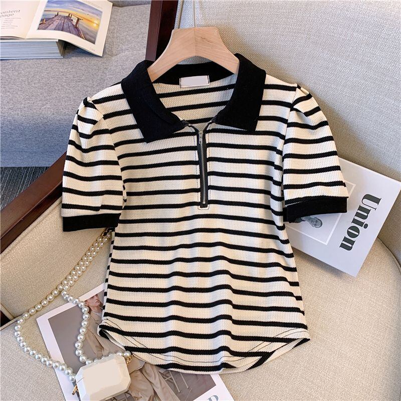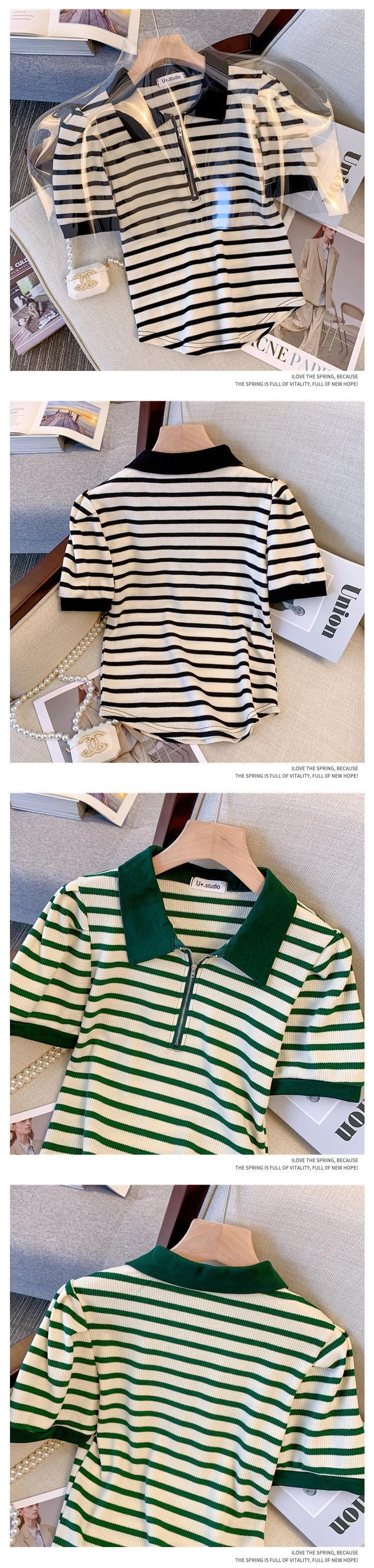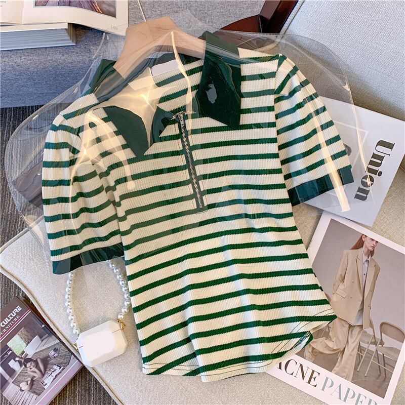 プラスサイズの婦人服 2023 夏の新しいファットシスター年齢減少カジュアル痩身配色ストライプオールマッチ半袖トップ 大きめサイズ サマー 夏物 8884131052908147