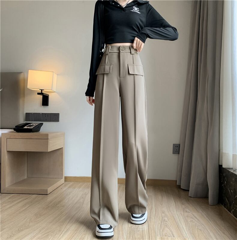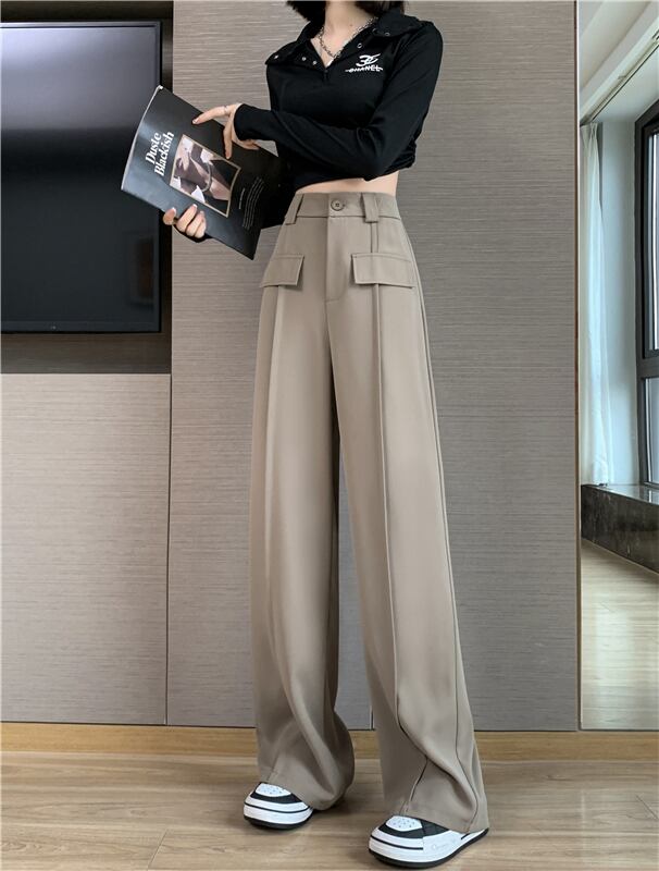 プラスサイズの婦人服2023春服ファットシスターズの新しいワイドレッグスーツパンツハイウエストルーズドレープストレートレッグモップパンツ ハイウェスト 大きめサイズ スプリング 春物 8884199255841347