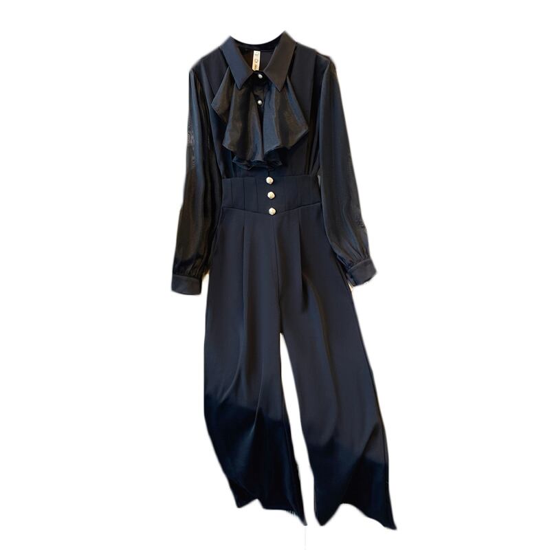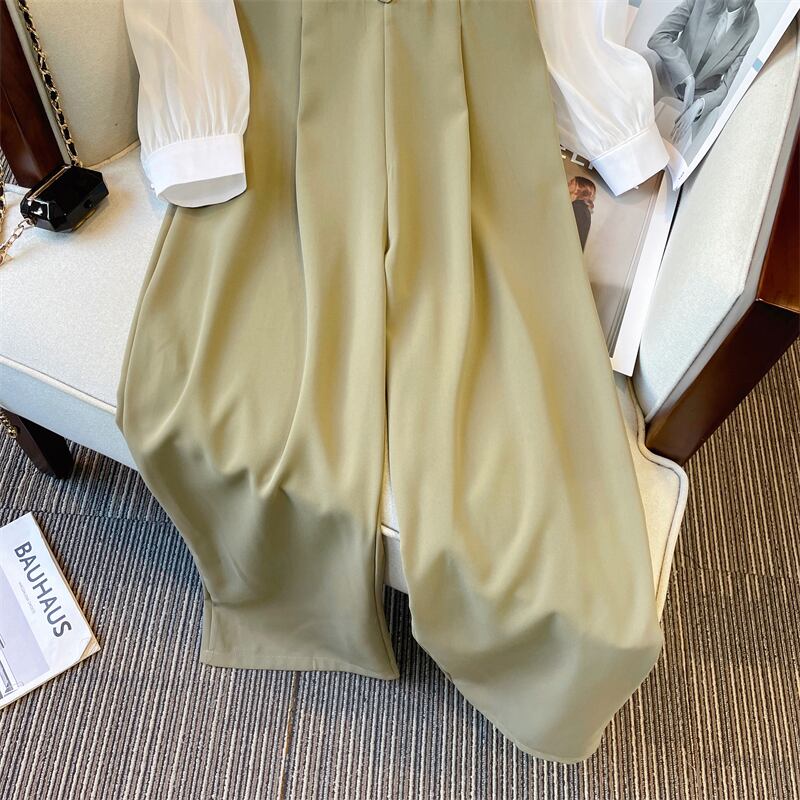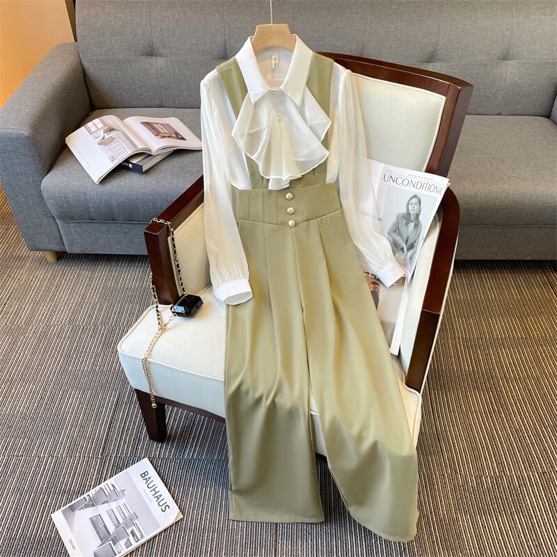 大きいサイズの婦人服 2023 春の新しいファット シスター シックなデザイン センス シャツ年齢を減らすサスペンダー カジュアル パンツ 2 点セット 大きめサイズ スプリング 春物 8884187457431470