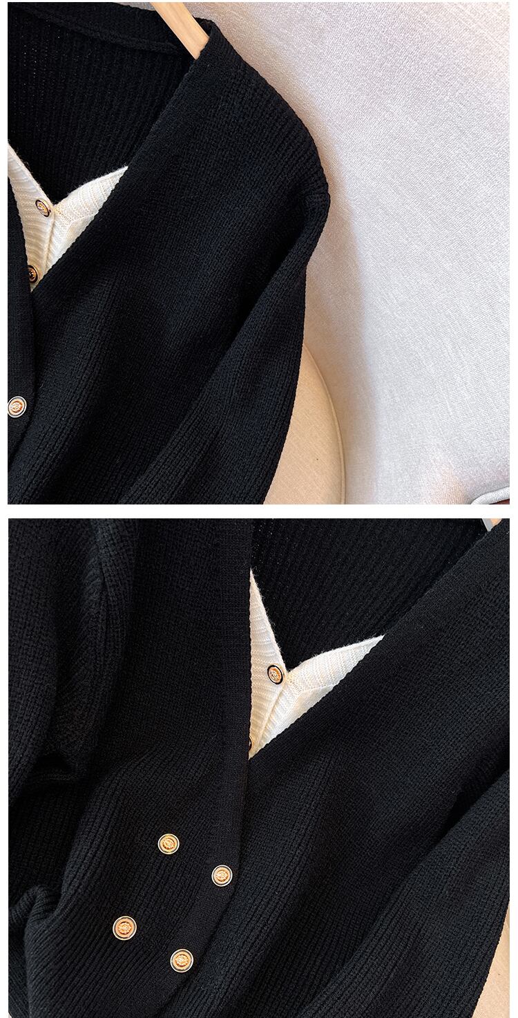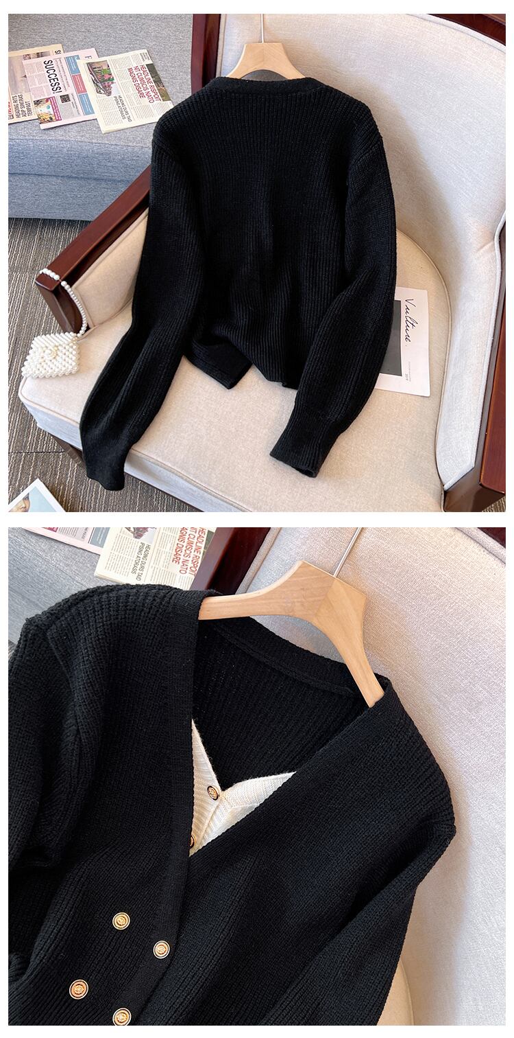 プラスサイズの婦人服 2023 春の新しいスタイルのファットシスタールーズフェイクツーピースニットカーディガンシックなセーターの女性 大きめサイズ スプリング 春物 8884138287794228