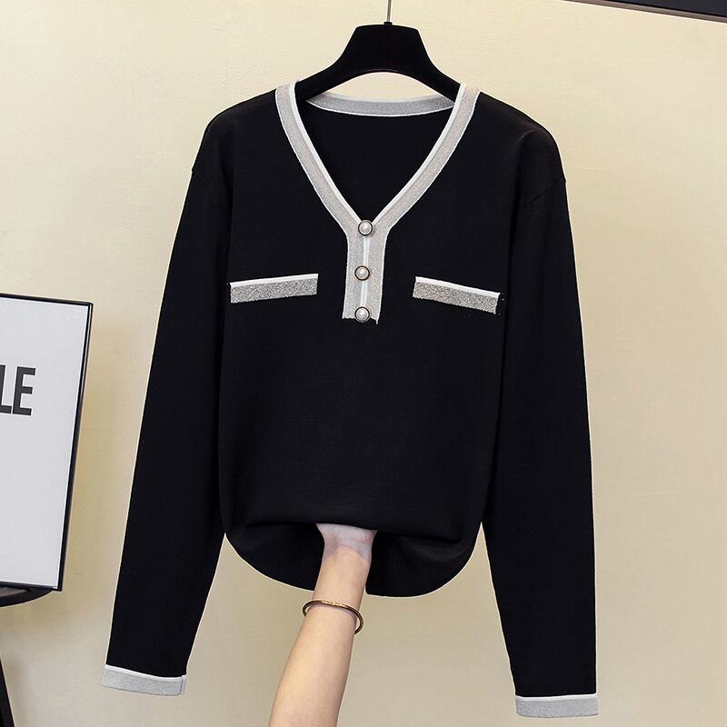 大きいサイズの婦人服 2023 トレンディな女性の春の新しい太った姉妹 eign スタイル v ネックのセーターゆったりと薄い長袖ボトムス シャツ ロング 大きめサイズ スプリング 春物 Vネック 8884150844088587