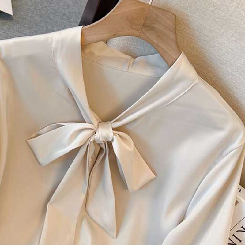 大きいサイズの婦人服 2023 春の新しいファット シスター フレンチ ボウ長袖デザイン シックなカジュアル シャツ ロング リボン 大きめサイズ スプリング 春物 8884193988861758
