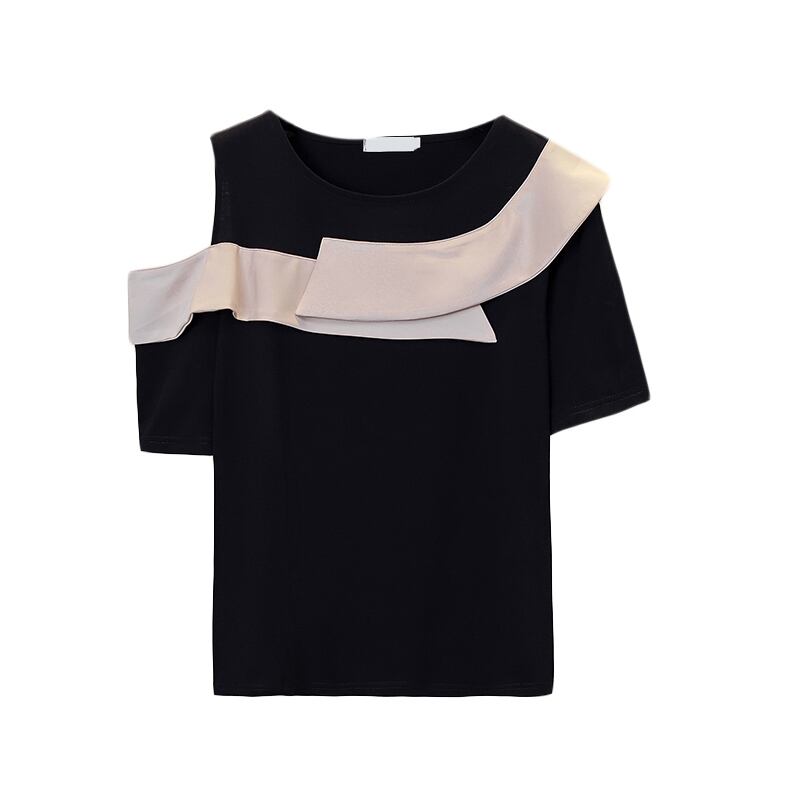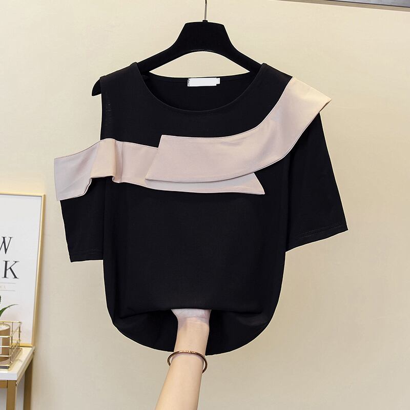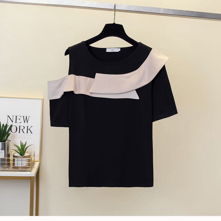 大きいサイズの婦人服 2023 夏の新しいファット シスター ルーズで年齢を減らすデザイン センス オフショルダー シックな腹を覆う Tシャツの女性 大きめサイズ サマー 夏物 888411907066863