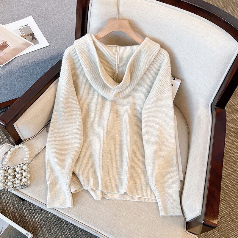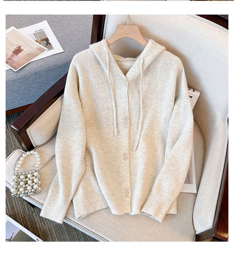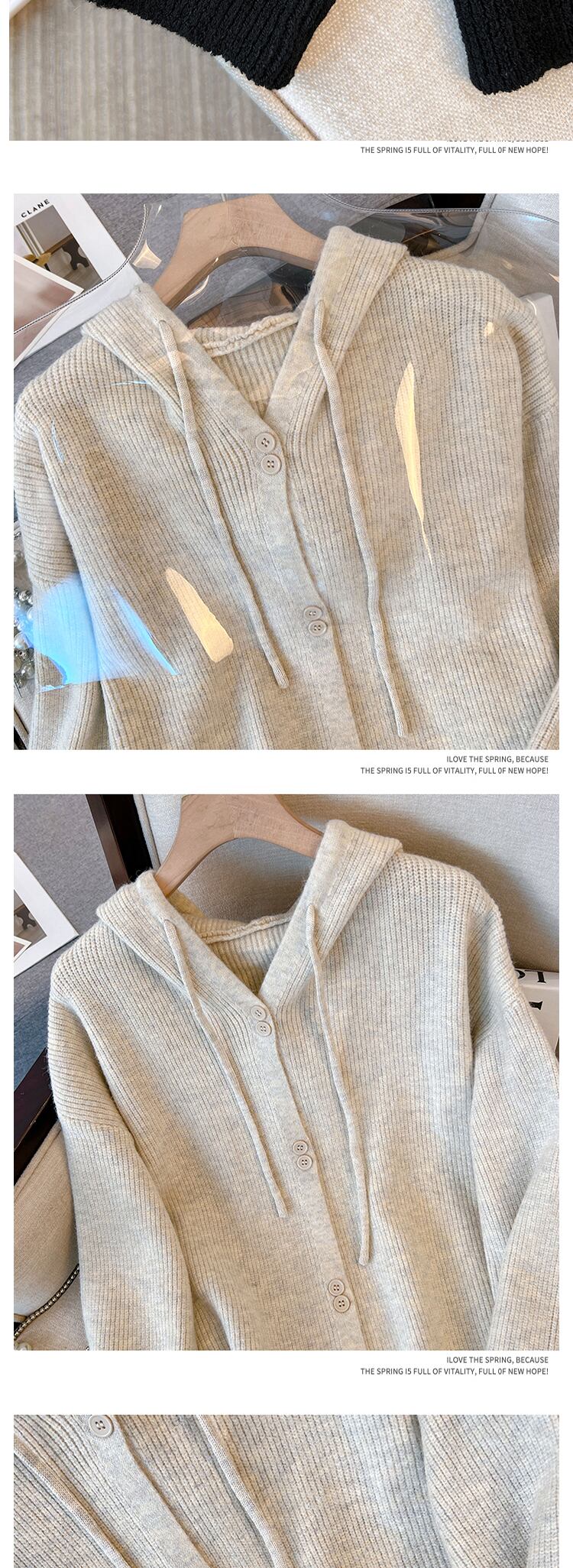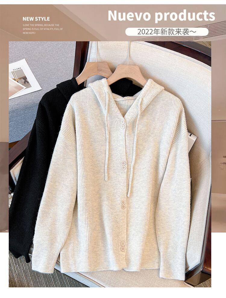 プラスサイズの婦人服 2023 春服脂肪姉妹新しいシングルブレスト怠惰な風フード付きニットカーディガン長袖ジャケット ロング 大きめサイズ スプリング 春物 8884114485756294