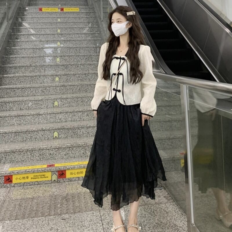 プラスサイズの婦人服 2023 春の新しいファットシスターフレンチレーストップハイウエストヒップカバースカート 2 点セット ハイウェスト 大きめサイズ スプリング 春物 888415089327653