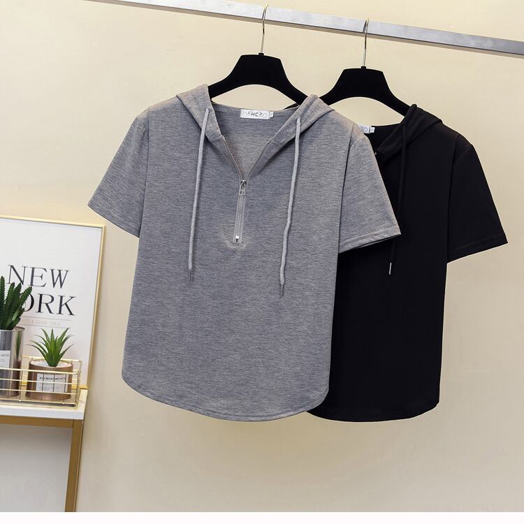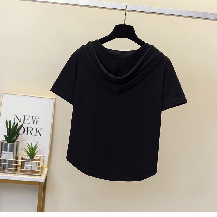 大きいサイズの婦人服 2023 夏の新しいファット シスター ファッション カジュアル オールマッチ年齢を減らすフード付きのシックな半袖 T シャツ 大きめサイズ サマー 夏物 Tシャツ 8884117229090575
