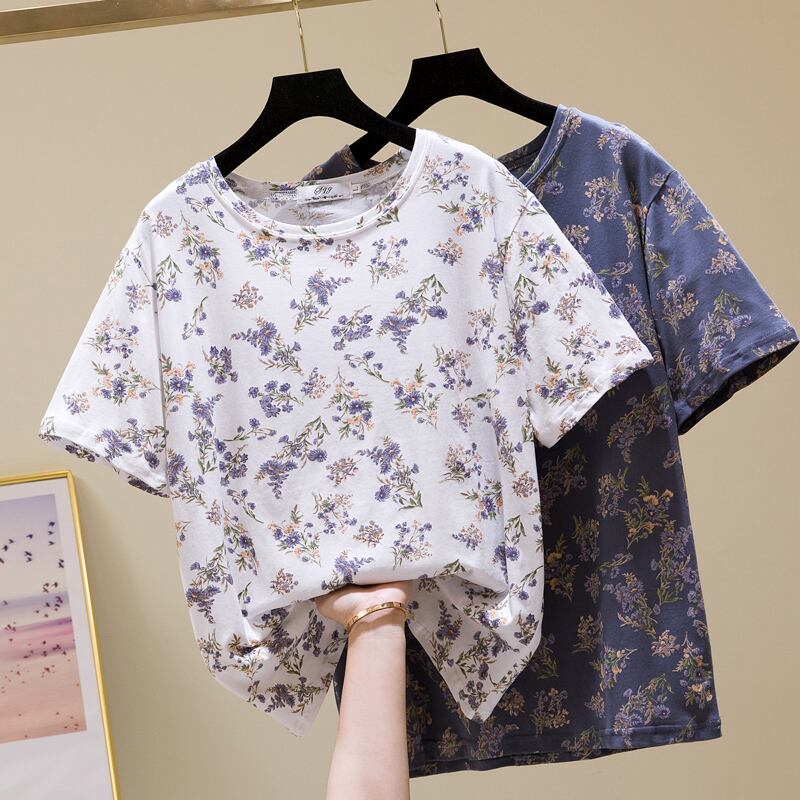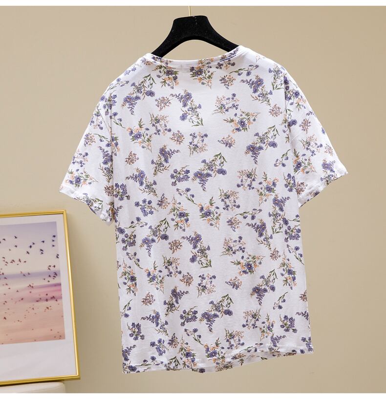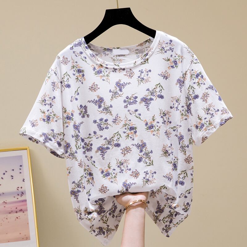 プラスサイズの婦人服 2023 夏の新しい太った姉妹のファッション薄い花柄のスタイルのエレガントな腹をカバーするシックな Tシャツ 大きめサイズ サマー 夏物 8884141262243985