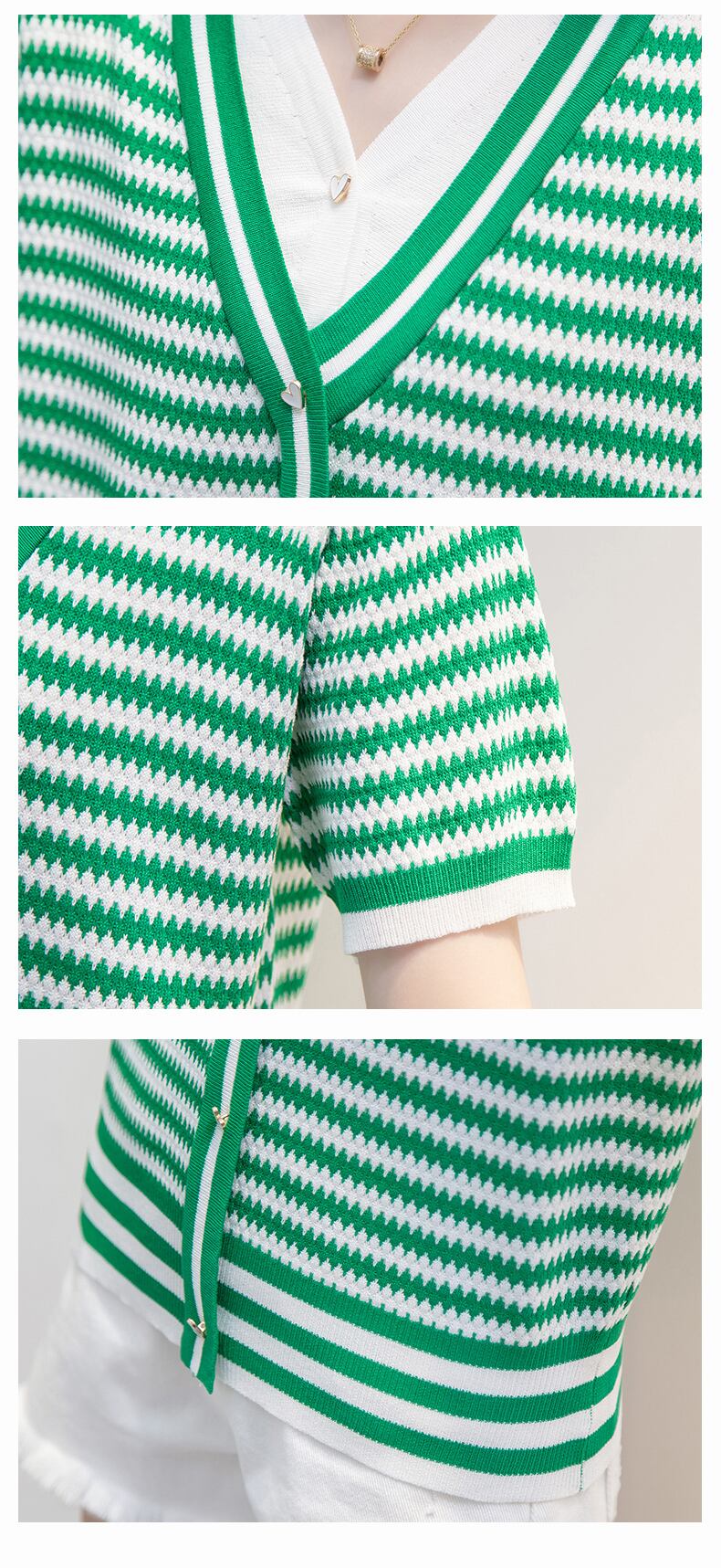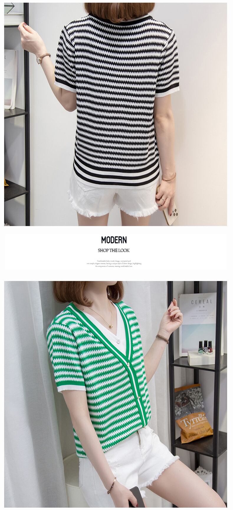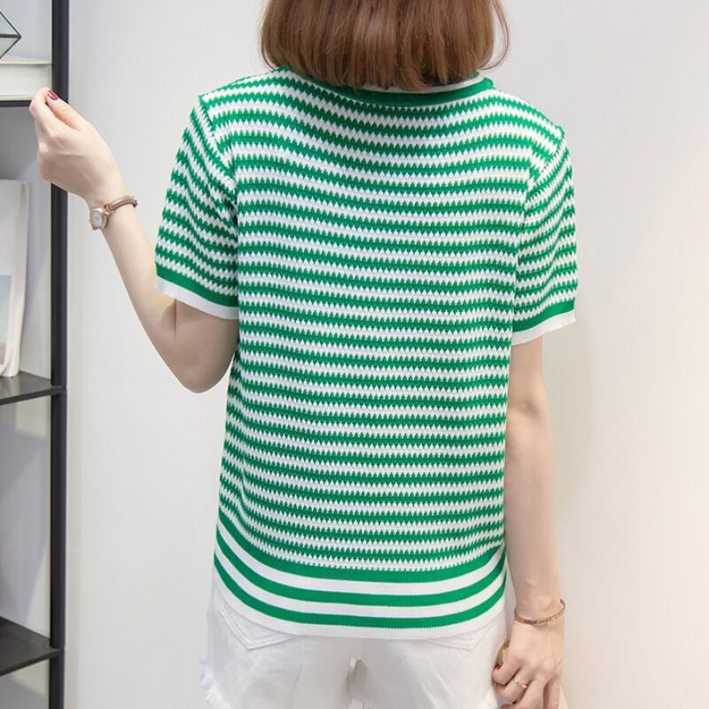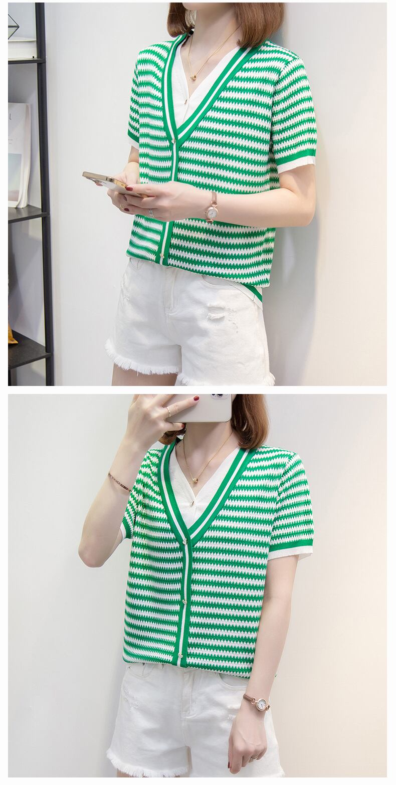 プラスサイズの婦人服 2023 夏の新しい太った姉妹に見える薄い気質アイス シルク スプライシング偽ツーピース ストライプ Tシャツ女性 大きめサイズ サマー 夏物 8884188890644619