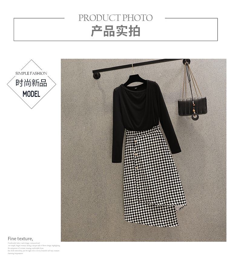 大きいサイズの婦人服 2023 太った姉妹春の新しいファッション長袖 Tシャツ不規則なスカート 2 点セット ロング 大きめサイズ スプリング 春物 8884110445581910
