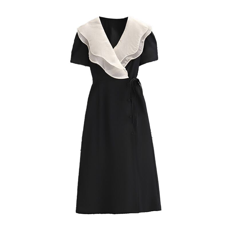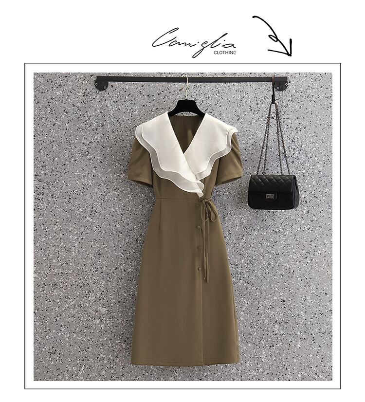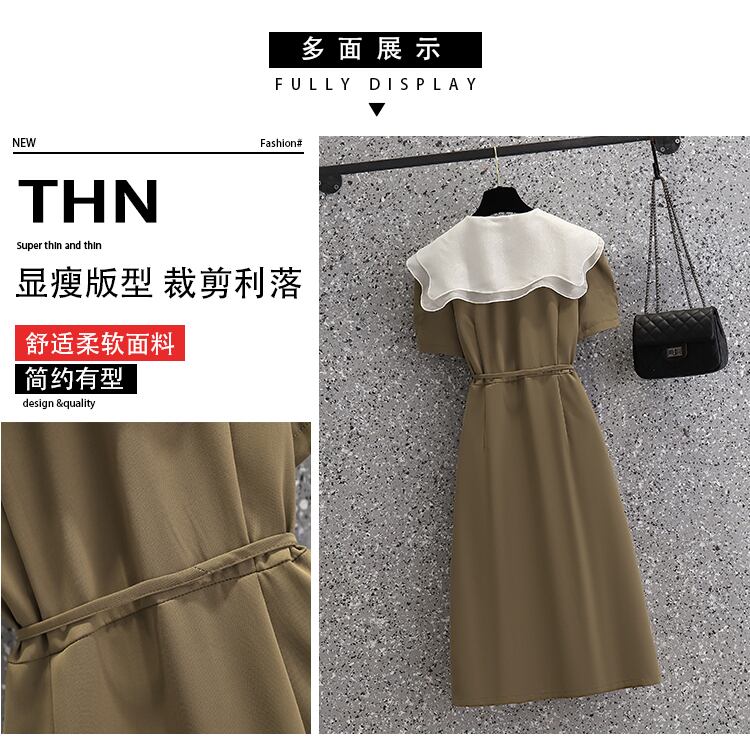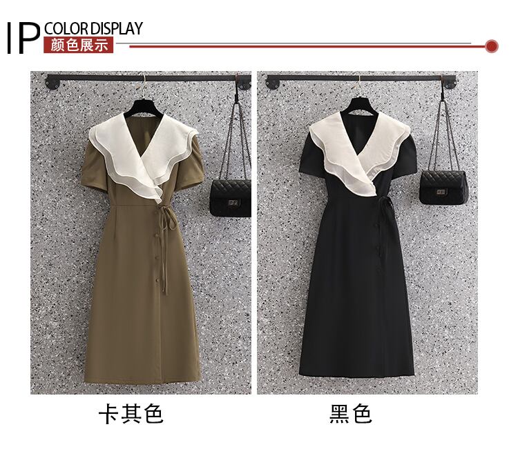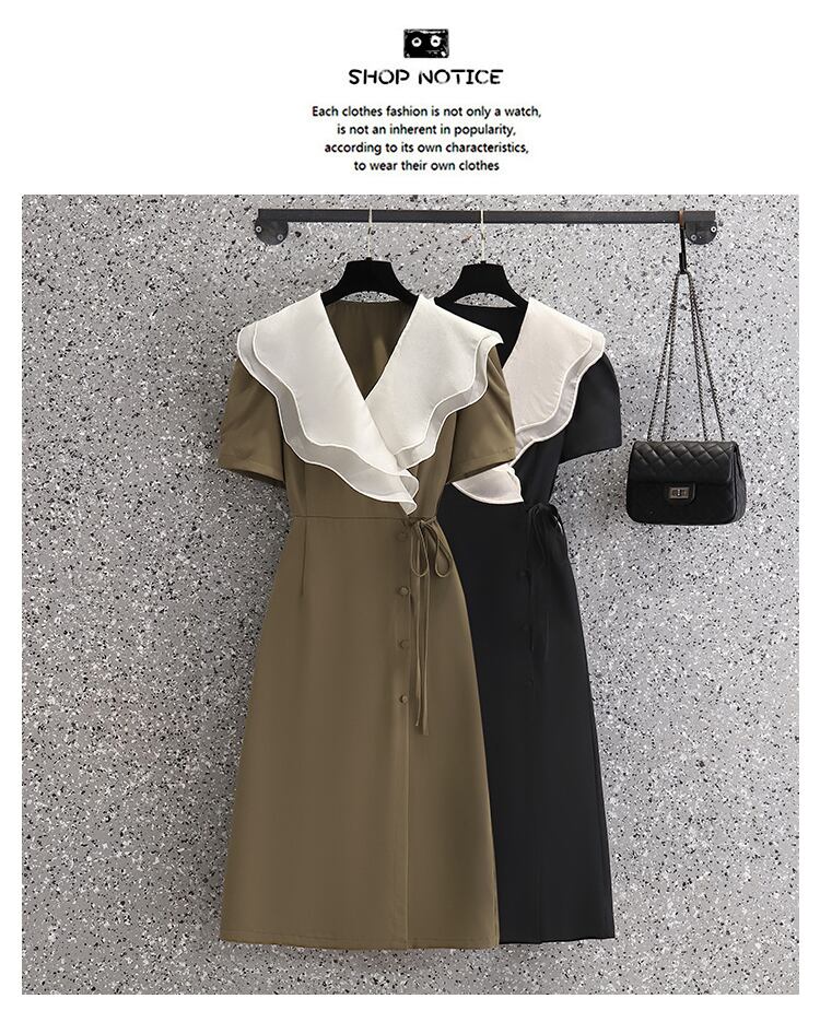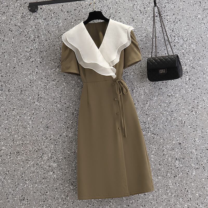 プラスサイズの婦人服 2023 ファットシスター夏の新しいフレンチヘップバーンスタイルのウエスト痩身フリルドレス女性 大きめサイズ サマー 夏物 8884188799933110