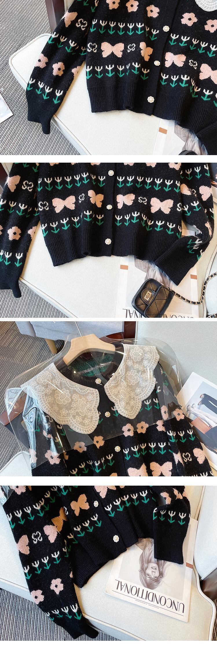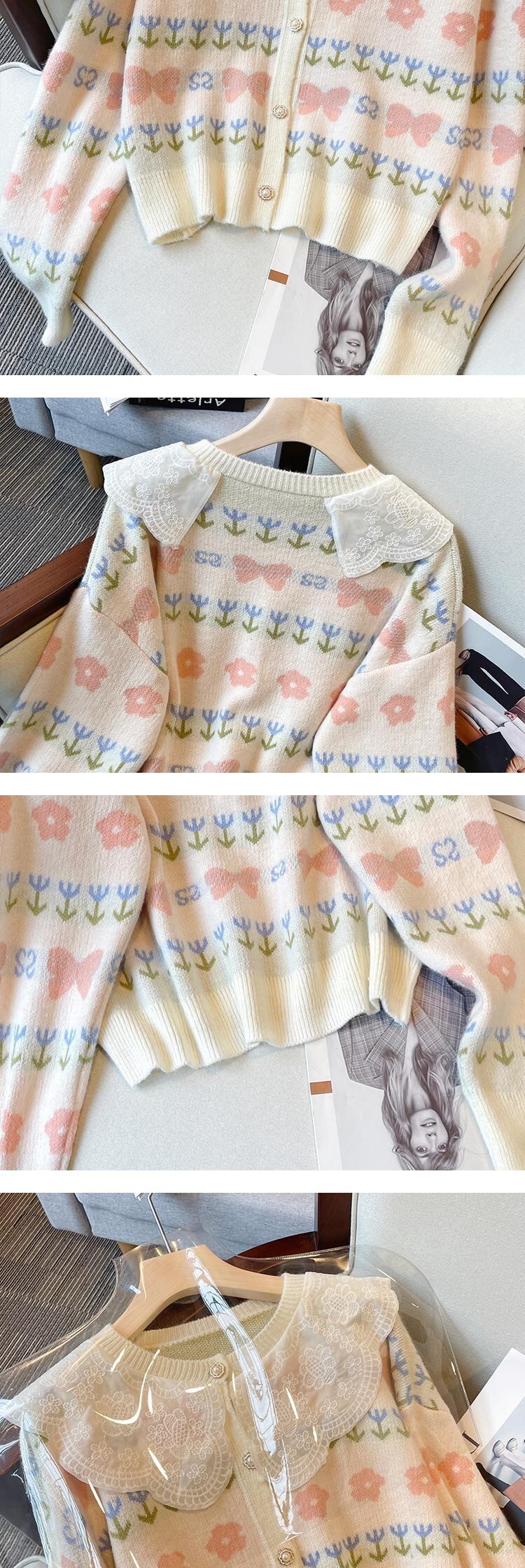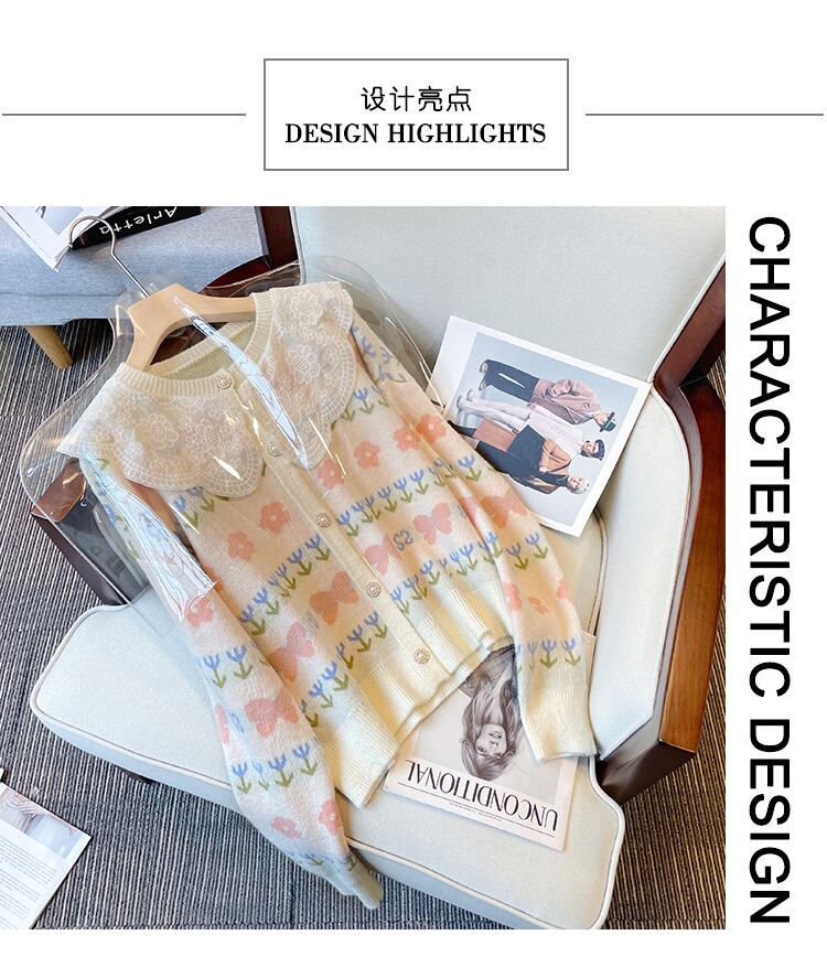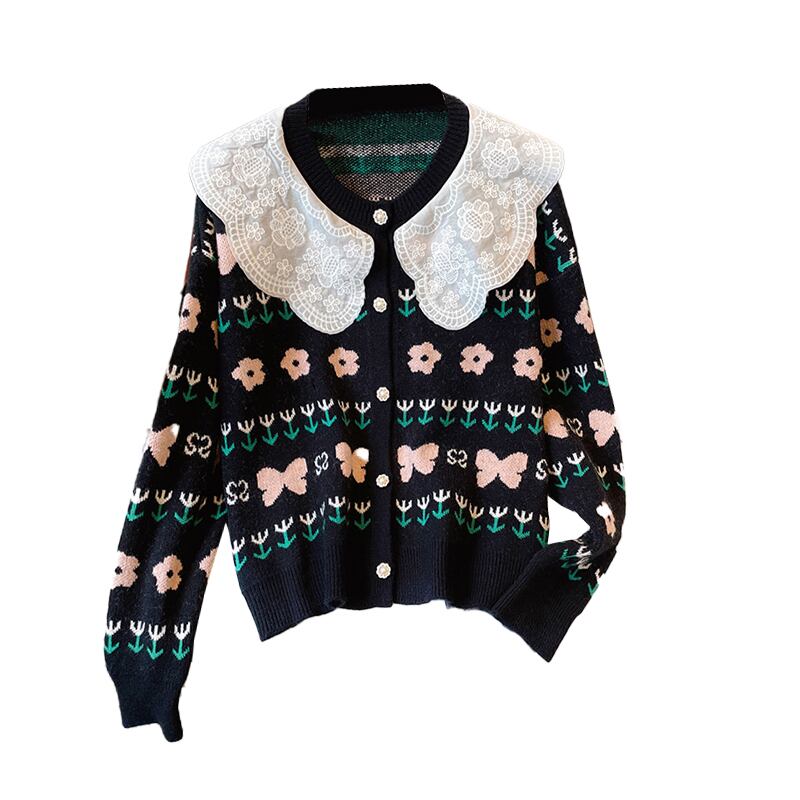 プラスサイズの婦人服 2023 ファットシスター春の新しいレースの人形の襟ニットカーディガン甘いルーズセーターコート 大きめサイズ 大人ガーリー スウィート キュート カジュアル スプリング 春物 8884124477470669