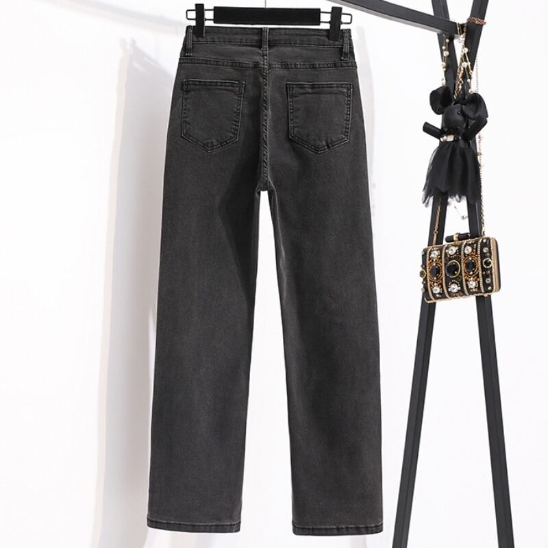 プラスサイズの婦人服 2023 トレンディな女性の春の新しいファットシスターストレート弾性ハイウエストルーズスタイル薄くて用途の広いジーンズ ハイウェスト エラスティック 伸縮 大きめサイズ スプリング 春物 8884179756354275