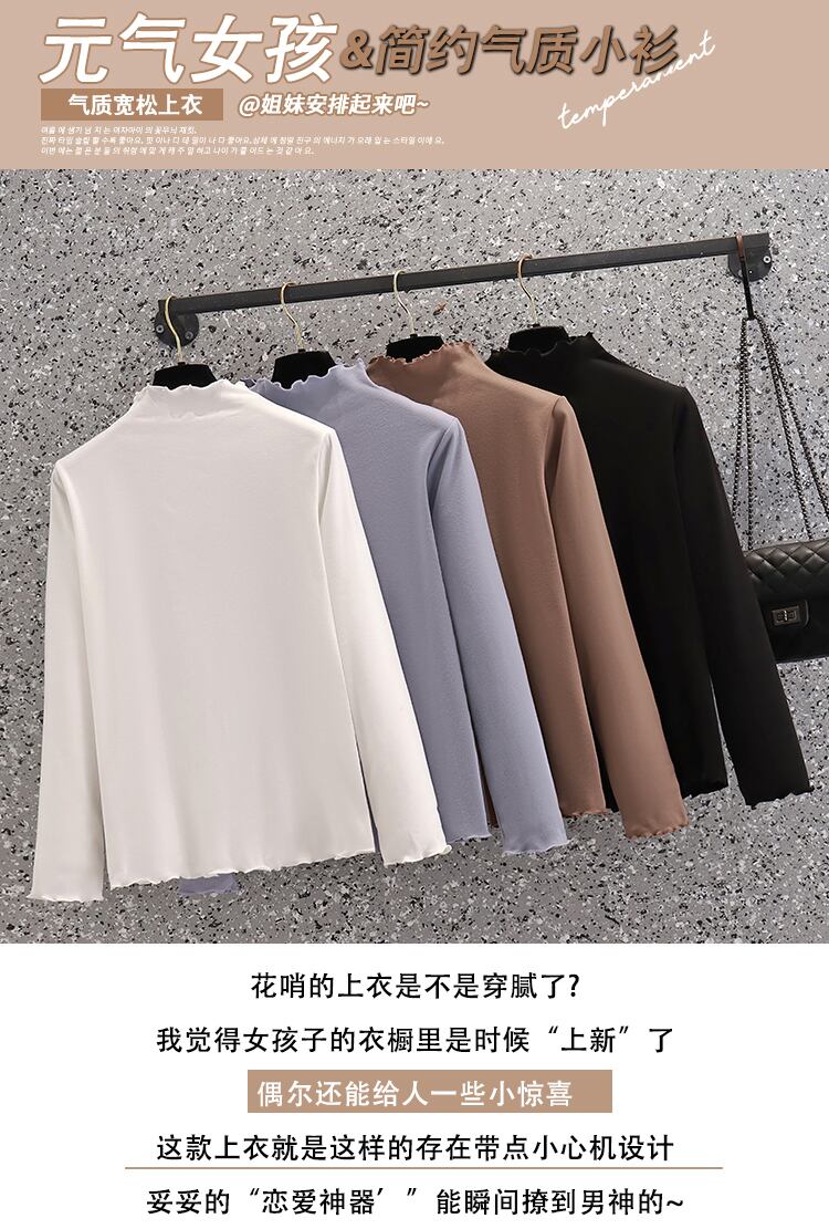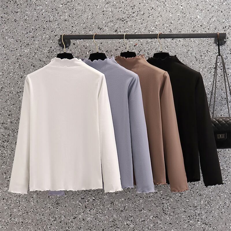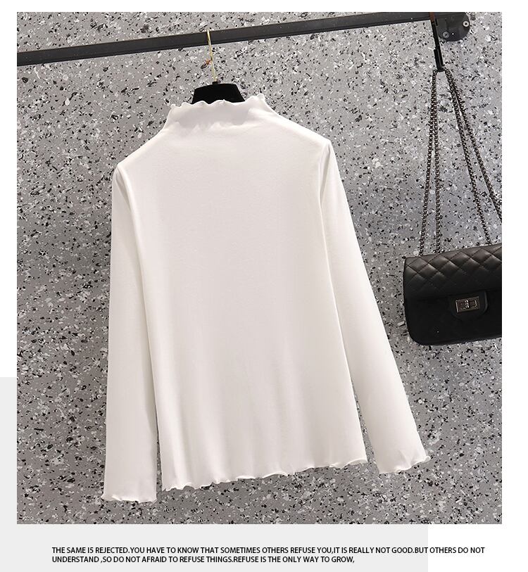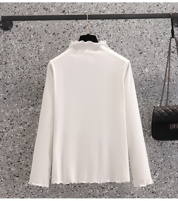 プラスサイズの婦人服 2023 ファットシスター夏の新しい底入れシャツ無地内側木製耳トップ長袖 tシャツ ロング 大きめサイズ サマー 夏物 ソリッドカラー 8884121337178129