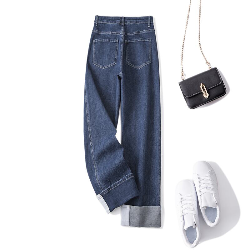 大きいサイズの婦人服2023春服ファットシスターズの新しいファッションルーズで薄いストレートレッグパンツシンプルなオールマッチジーンズ 大きめサイズ スプリング 春物 8884130523481005