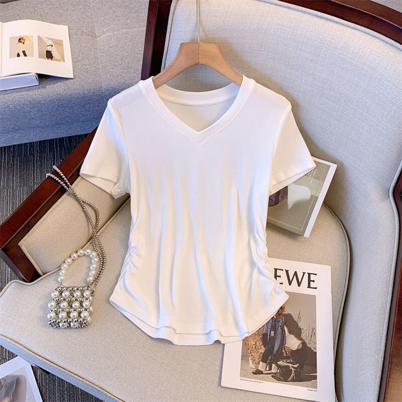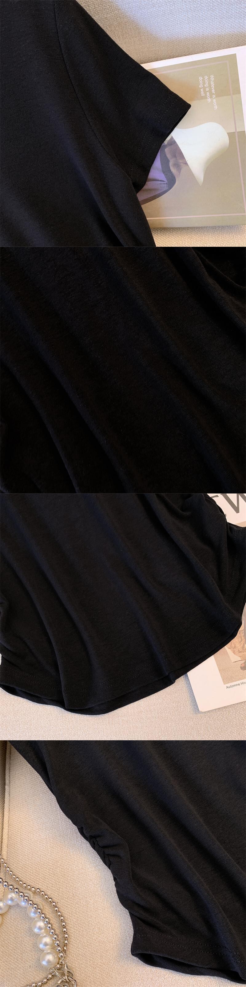 プラスサイズの婦人服 2023 夏の新しいファットシスターファッションスリムオールマッチ薄い半袖気質無地トップ 大きめサイズ サマー 夏物 ソリッドカラー 8884197638481909