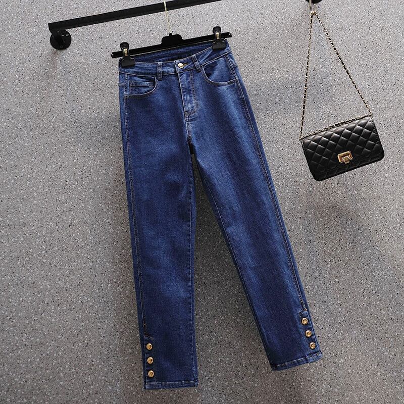 プラスサイズの婦人服 2023 春の新しいファットシスターストレート弾性ハイウエストスキンカバーカジュアル気質年齢減少ジーンズ エラスティック 伸縮 大きめサイズ スプリング 春物 8884156646630012