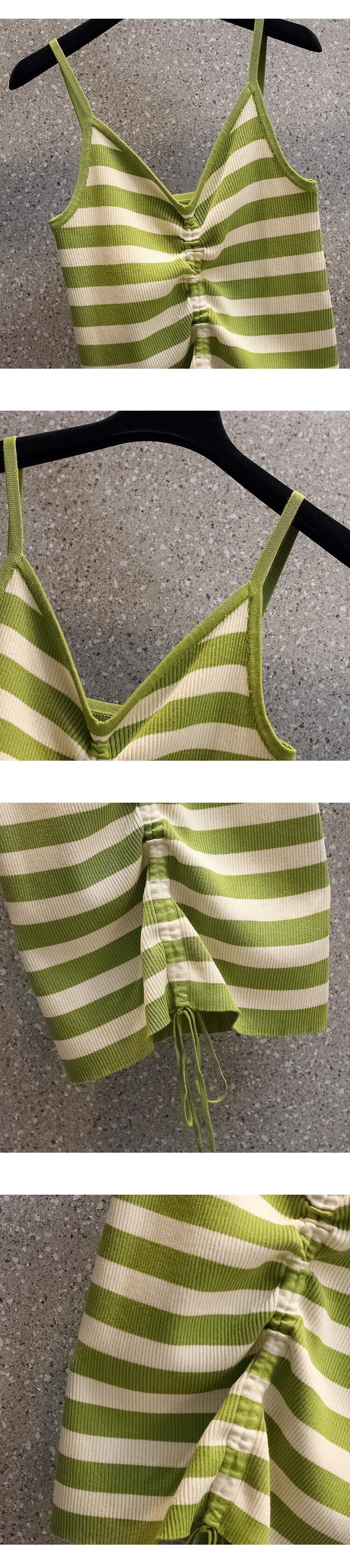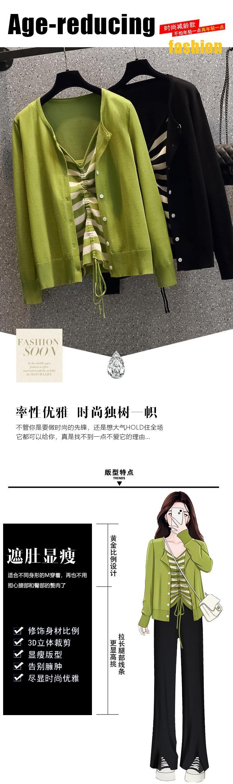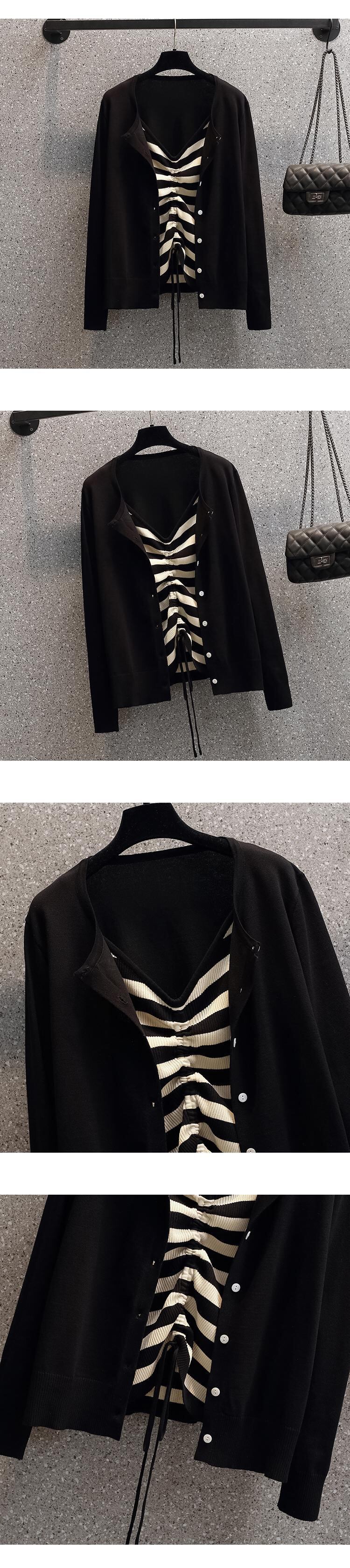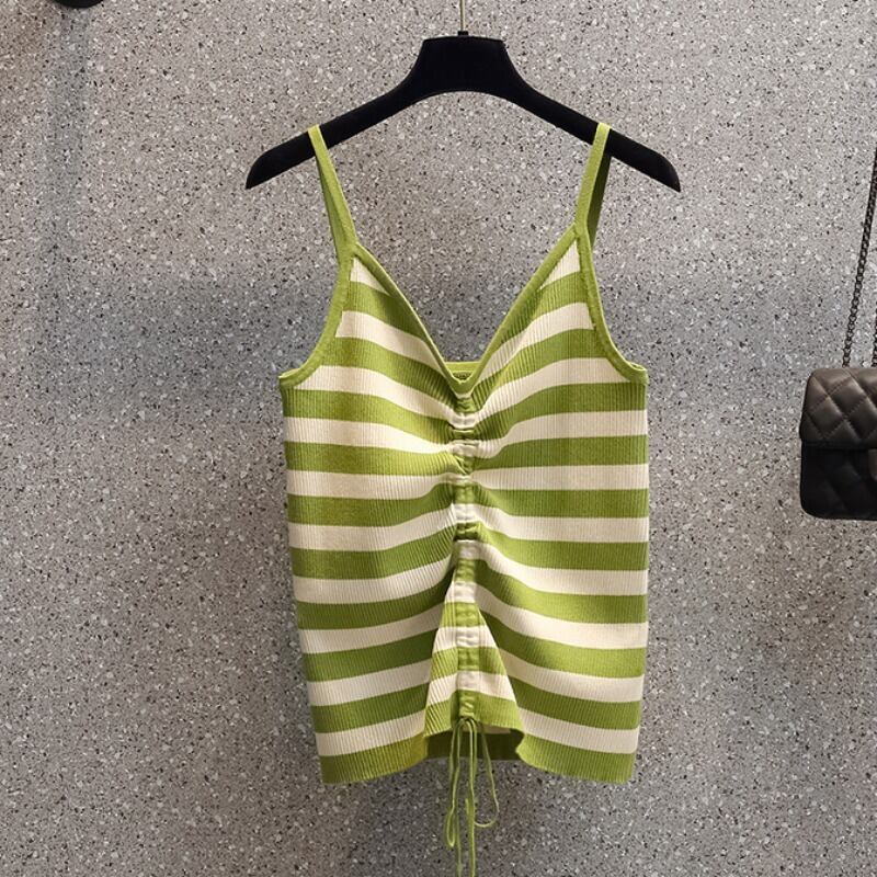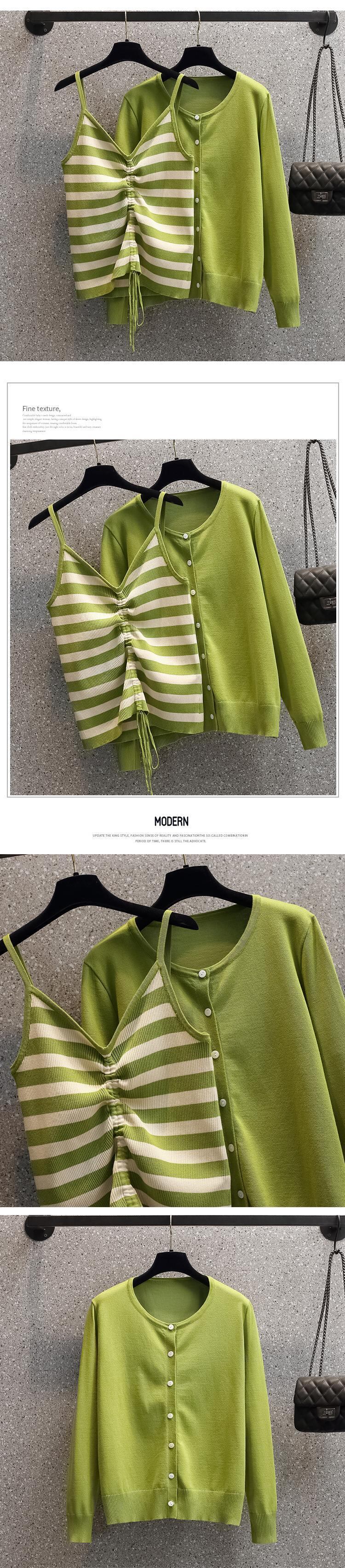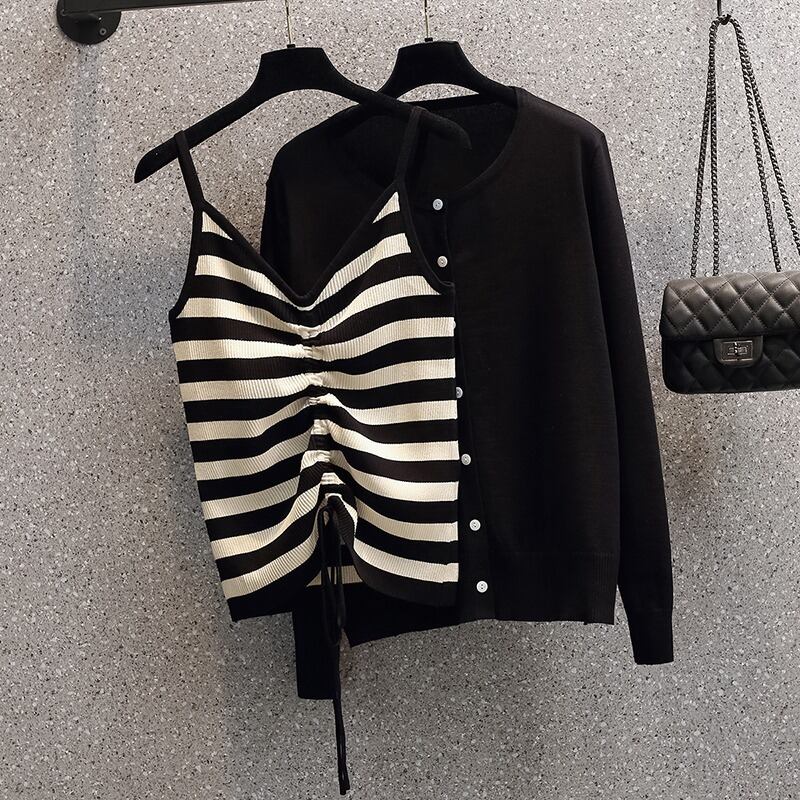 大きいサイズの婦人服 2023 トレンディな女性の春の新しい太った姉妹ファッション ストライプ ショート ニット セーター キャミソール 2 点セット 大きめサイズ スプリング 春物 8884140970030932