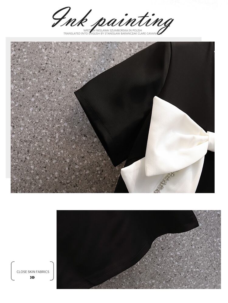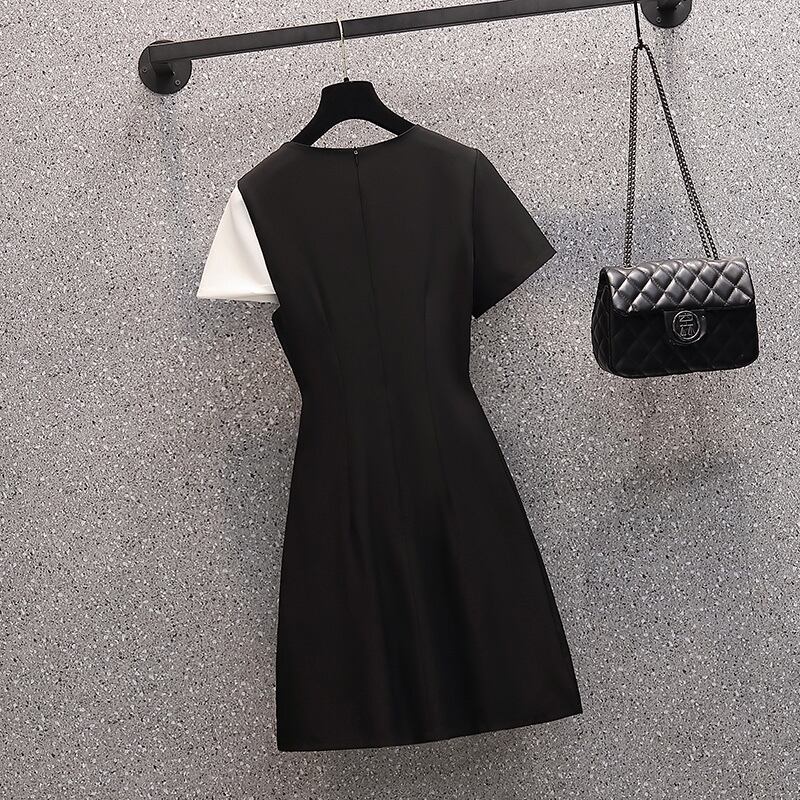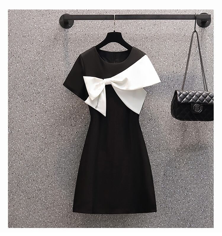 プラスサイズの婦人服 2023 夏の新しいファットシスターファッション緩いスプライシング不規則なちょう結びドレス女性 リボン 大きめサイズ サマー 夏物 8884178623694866