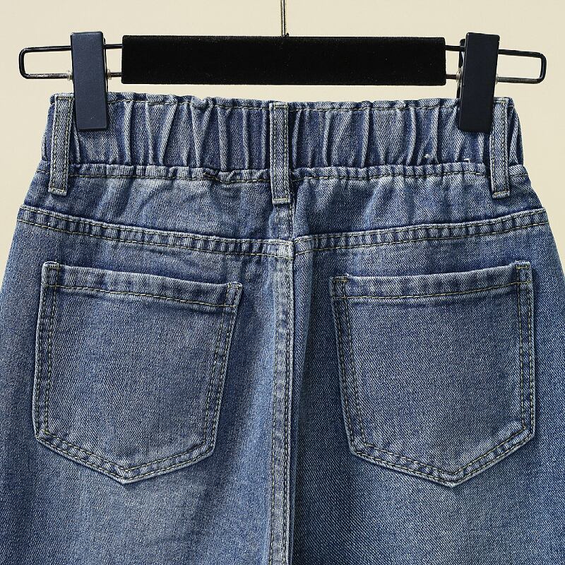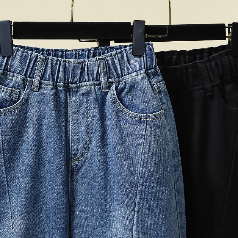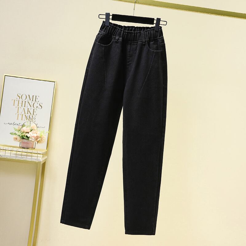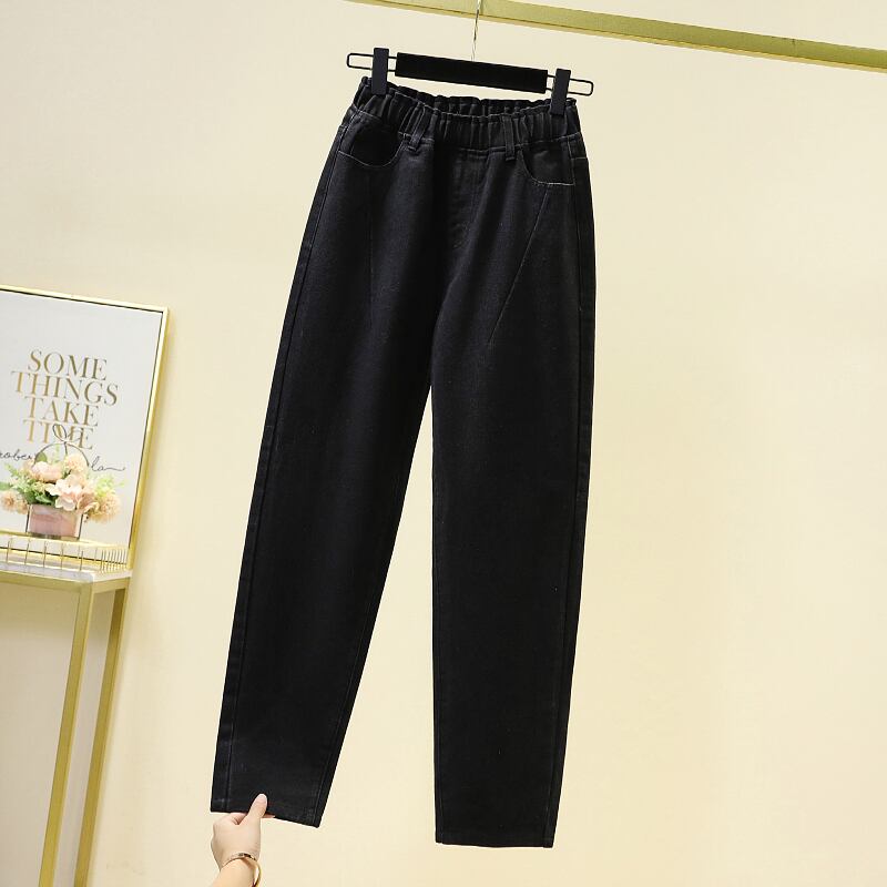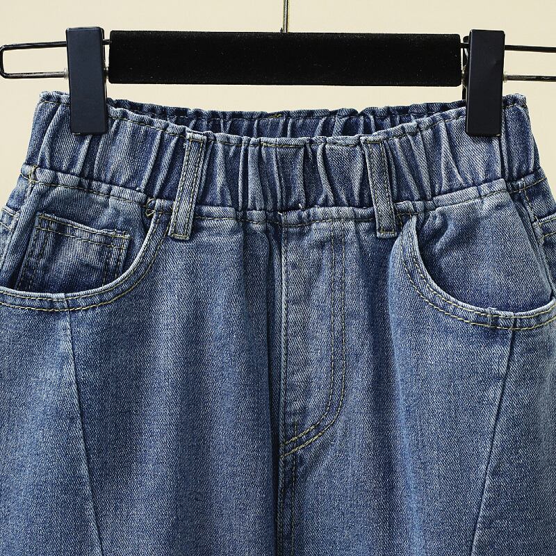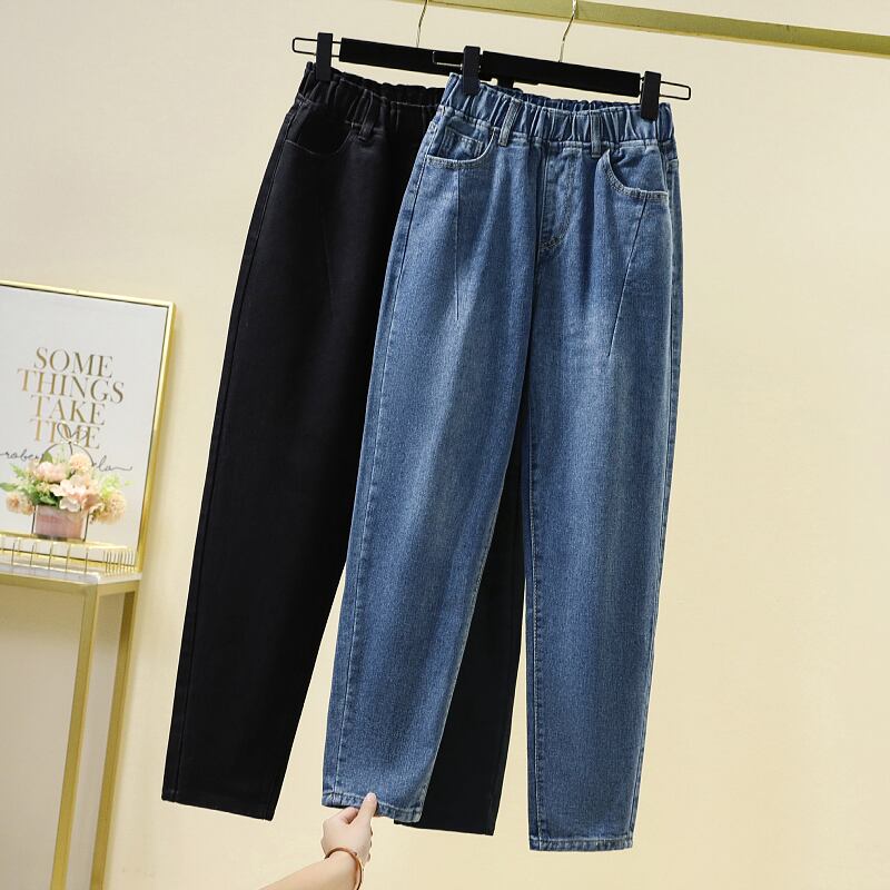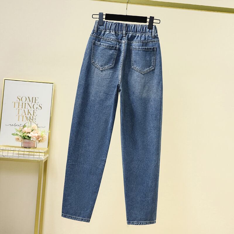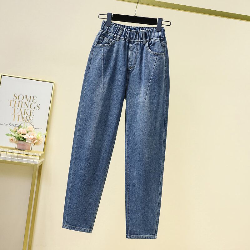 プラスサイズの婦人服 2023 ファットシスター春の新デニムパパパンツルーズハイウエスト弾性ウエストハーレムキャロットパンツ ハイウェスト エラスティック 伸縮 大きめサイズ スプリング 春物 8884176201749049