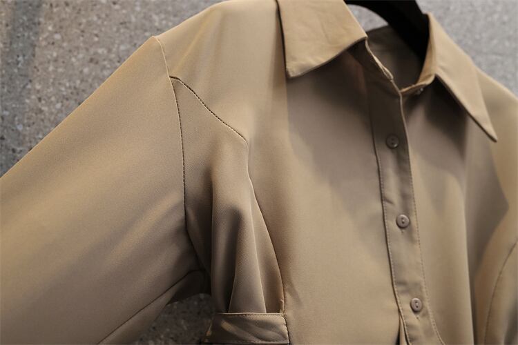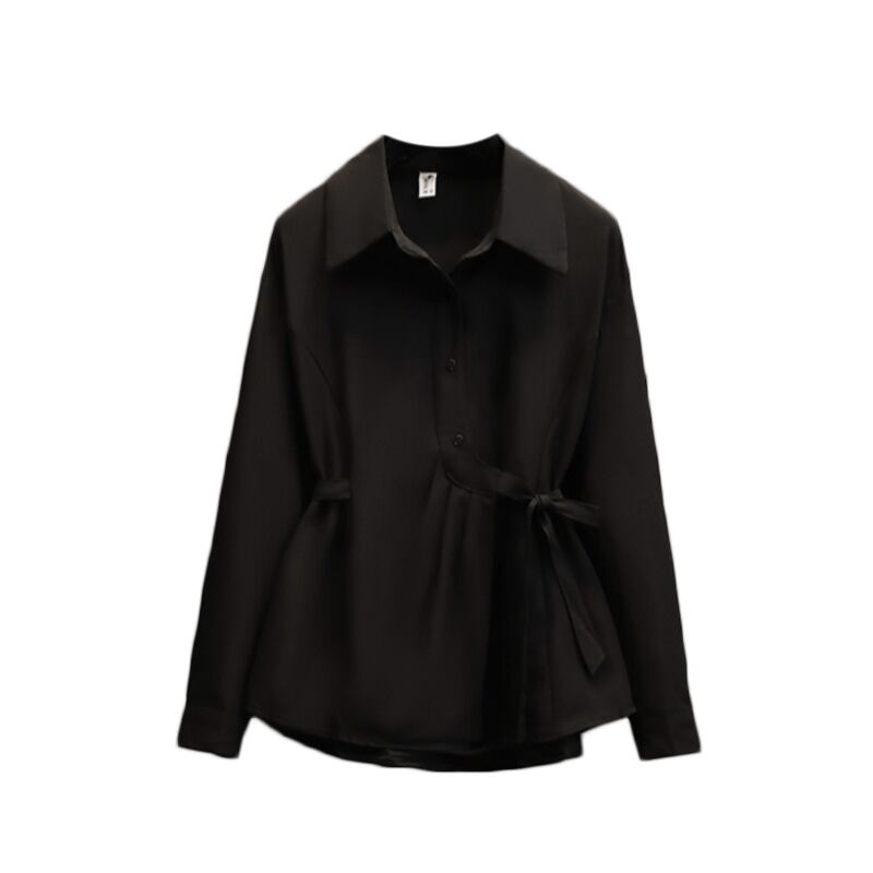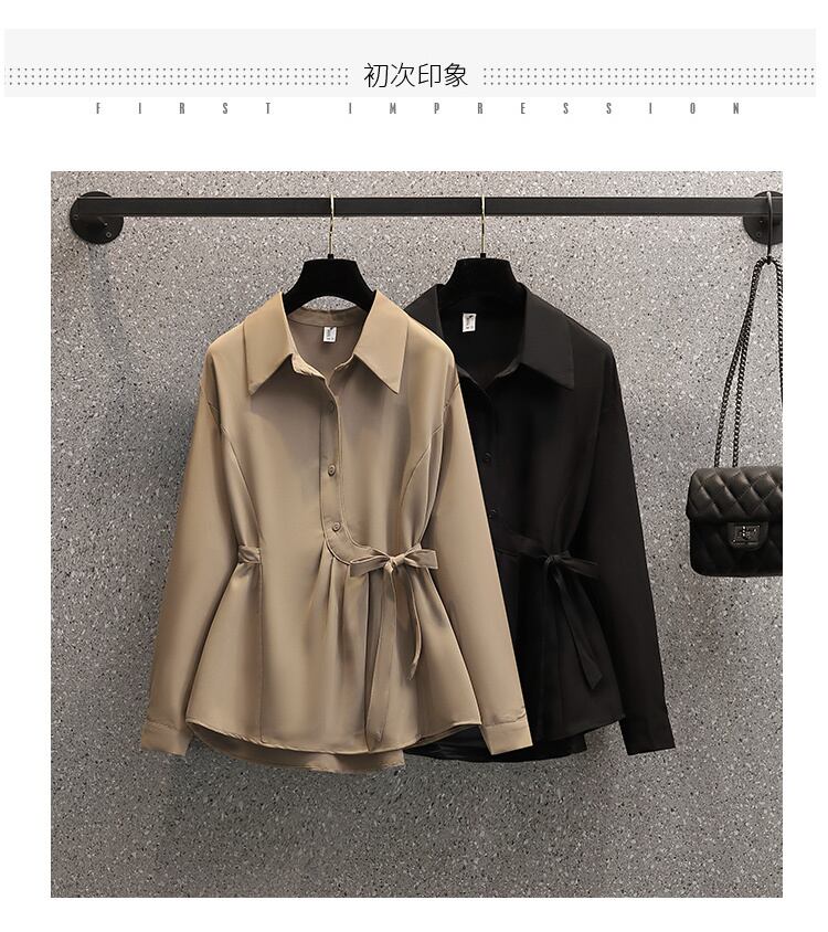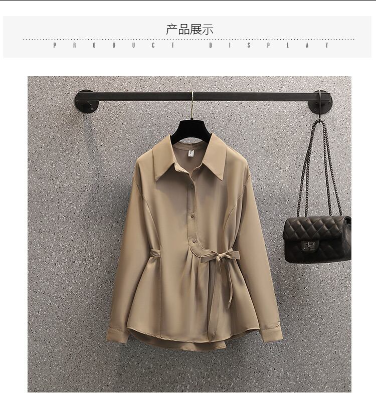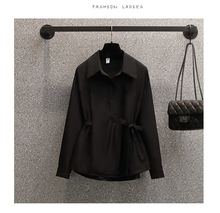 大きいサイズの婦人服 2023 春の新しい太った姉妹の年齢を減らすファッション痩身洋風オールマッチ ストラップ ウエスト シャツ 大きめサイズ スプリング 春物 8884125549929229