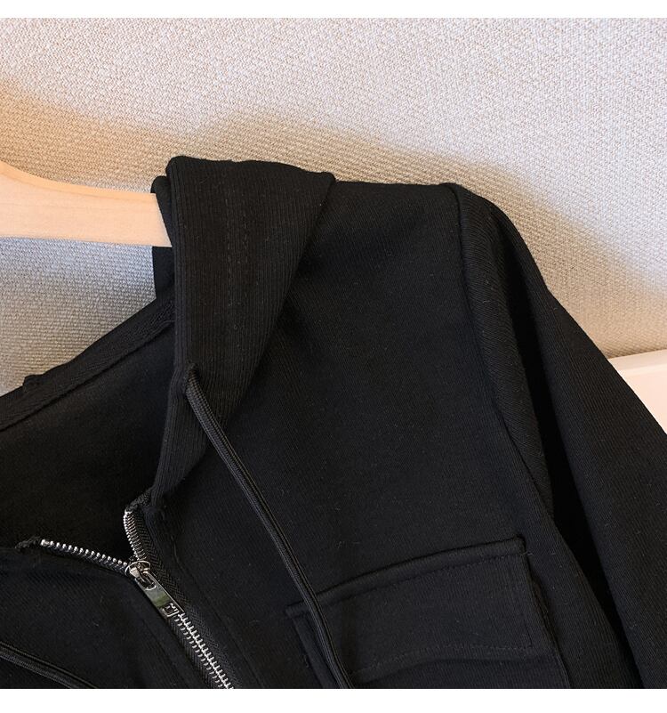 プラスサイズの婦人服 2023 ファットシスター春の新カジュアル年齢引き下げファッションフード付きジッパーカーディガン長袖トップ女性 ロング 大きめサイズ スプリング 春物 888412251585364