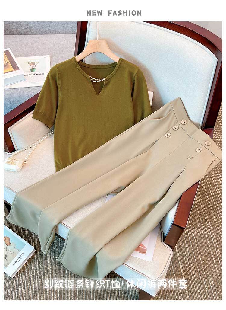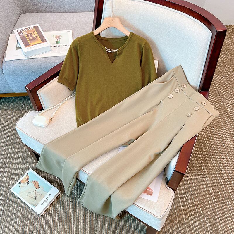大きいサイズの婦人服 2023 夏の新しいファット シスター シックな洋風トップ ハイウエスト ファッション カジュアル パンツ 2 点セット 大きめサイズ サマー 夏物 8884144289634559