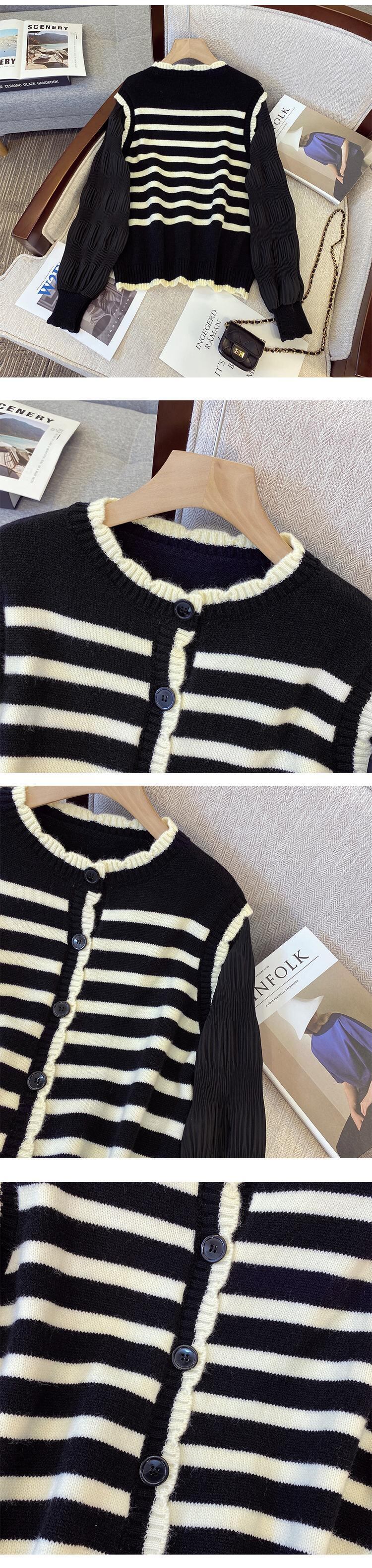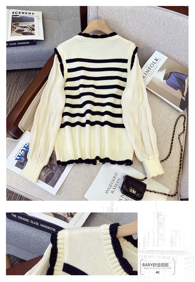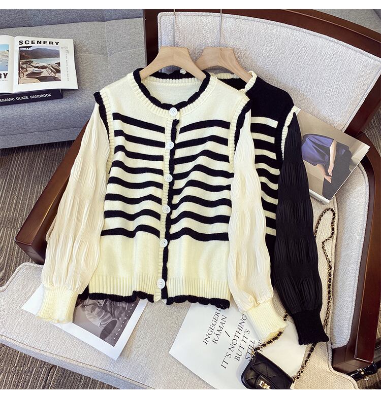 大きいサイズの婦人服 2023 春の新しいファット シスター フェイク ツーピース スプライシング デザイン センス カーディガン ラウンド ネック カジュアル トップ 大きめサイズ スプリング 春物 Oネック 8884151035753437