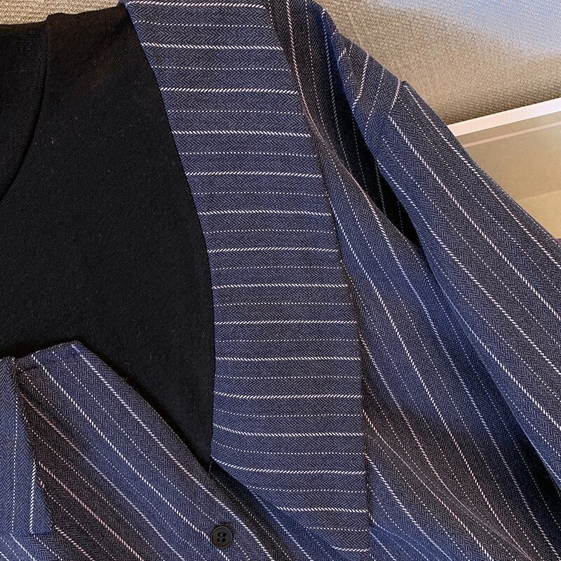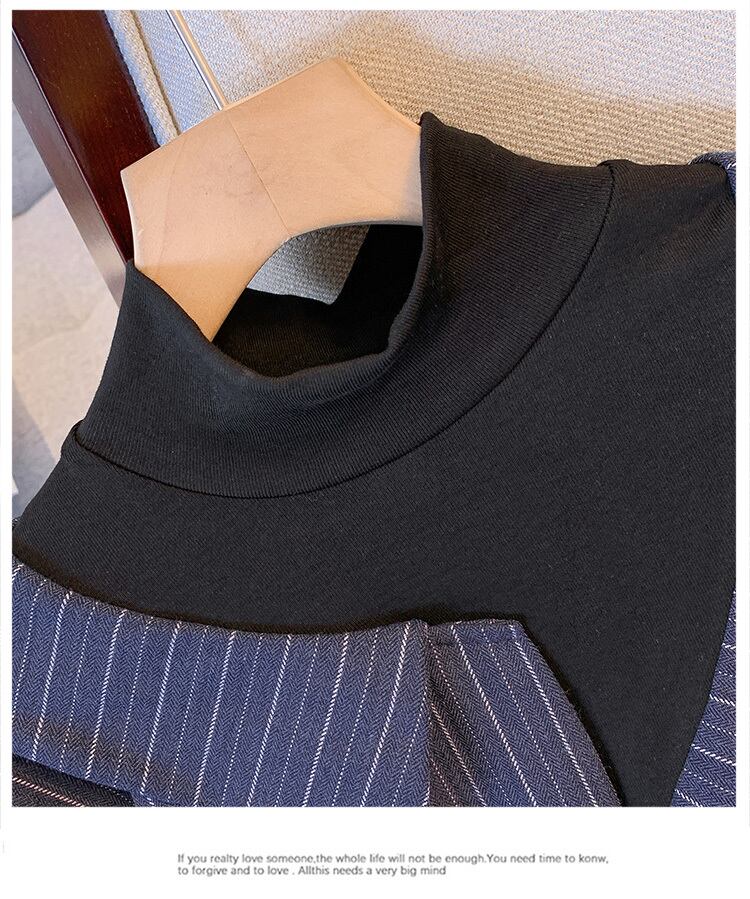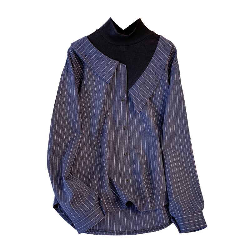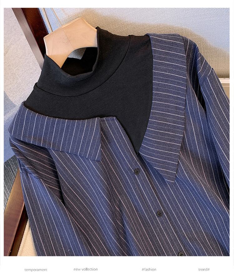 プラスサイズの婦人服 2023 春服脂肪姉妹新ファッションルーズシンフェイクツーピースカジュアル長袖シャツ女性 ロング 大きめサイズ スプリング 春物 8884144053435661