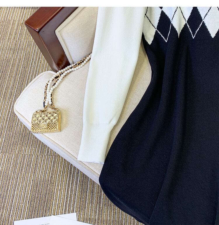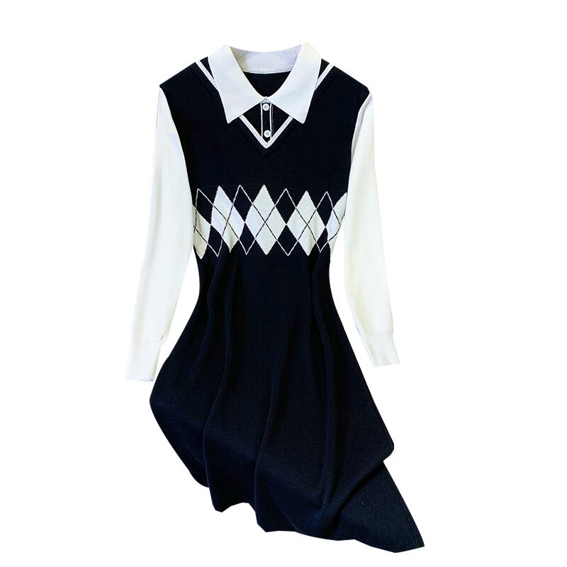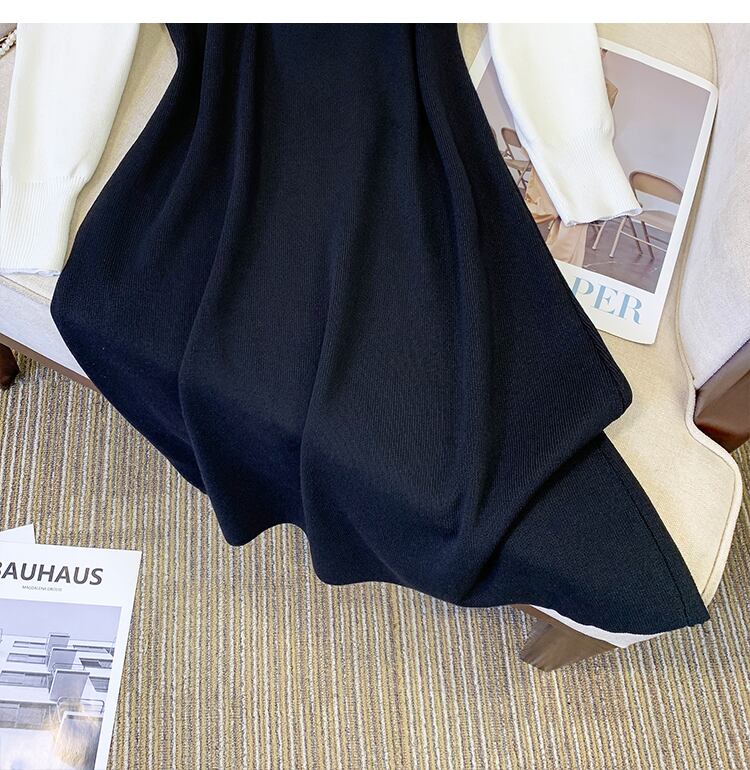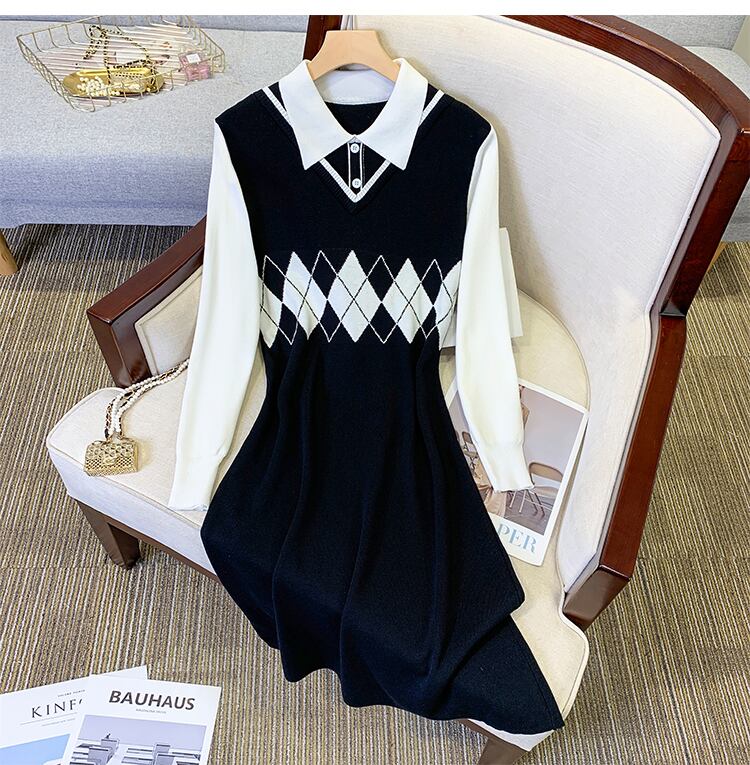 プラスサイズの婦人服 2023 春の新しいファットシスターファッション年齢減少ウエストステッチフェイクツーピースニットドレス 大きめサイズ スプリング 春物 8884158349347014