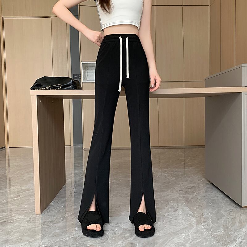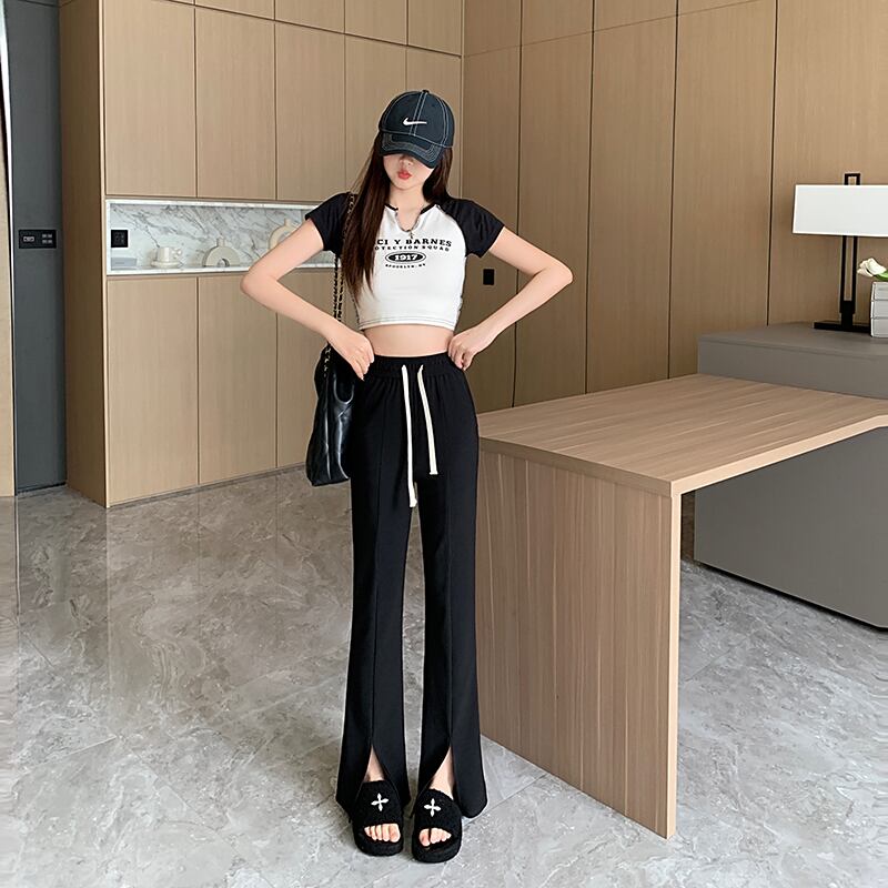大きいサイズの婦人服 2023 夏服の新しいスタイルのファット シスター ハイ ウエスト 痩身 カジュアル ドレープ スリット デザイン ワイドレッグ パンツ ハイウェスト 大きめサイズ サマー 夏物 8884157451427076