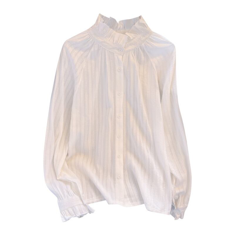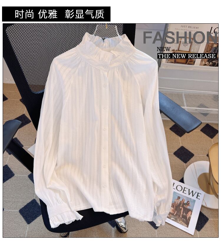 大きいサイズの婦人服 2023 トレンディな女性の春の新しい太った姉妹ファッション デザイン センス ニッチ長袖木製耳 eign スタイル シャツ ロング 大きめサイズ スプリング 春物 8884112876203453