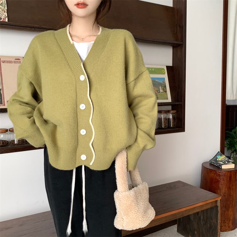 プラスサイズの婦人服2023ファットシスター春の新作レトロニットカーディガンデザインセンスゆったり薄手セーター 大きめサイズ スプリング 春物 8884181471065903