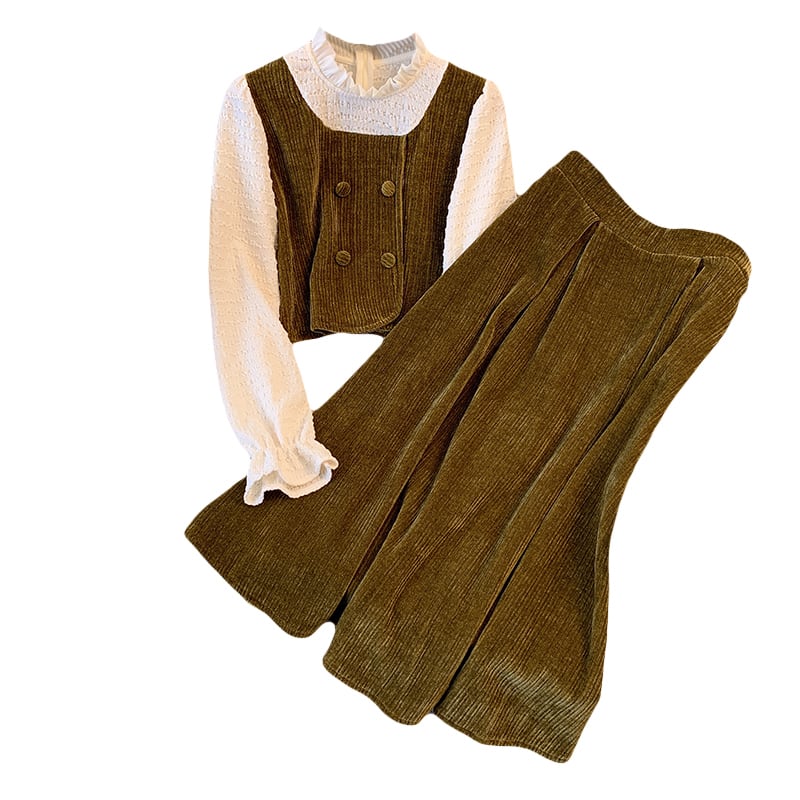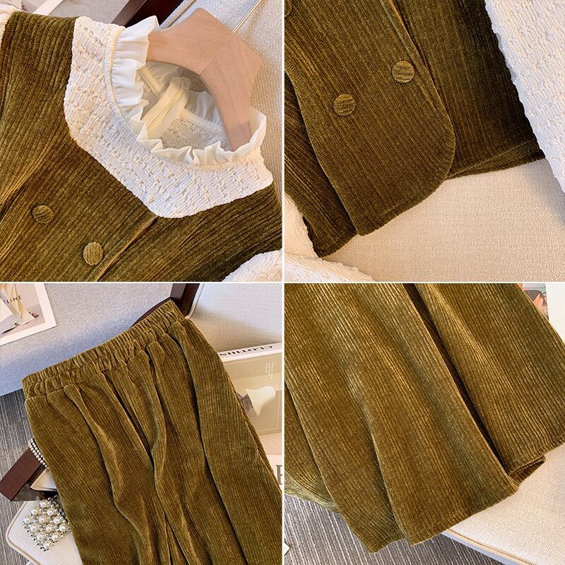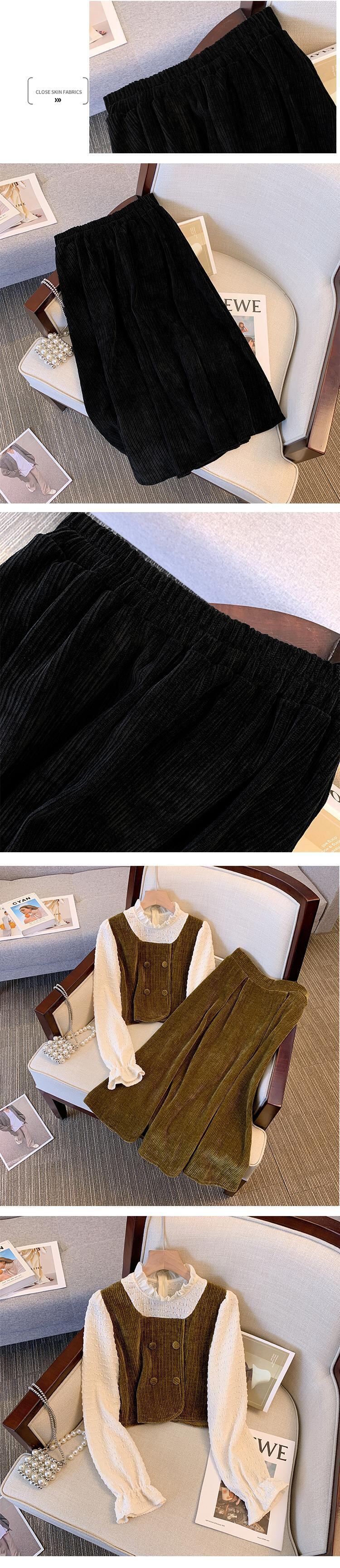 大きいサイズの婦人服 2023 ファット シスター春の新しいフレンチ ステッチ コーデュロイ トップ スカート 2 点セット 大きめサイズ スプリング 春物 888418519391342