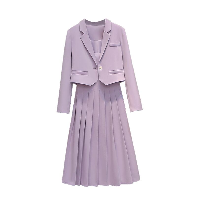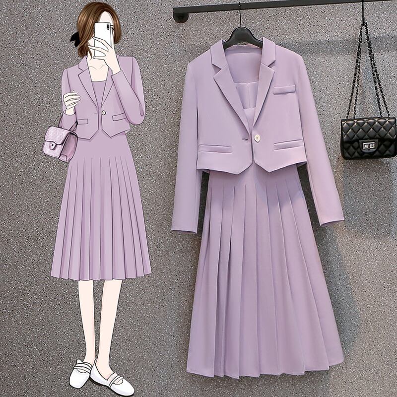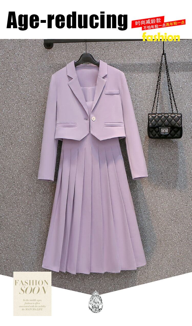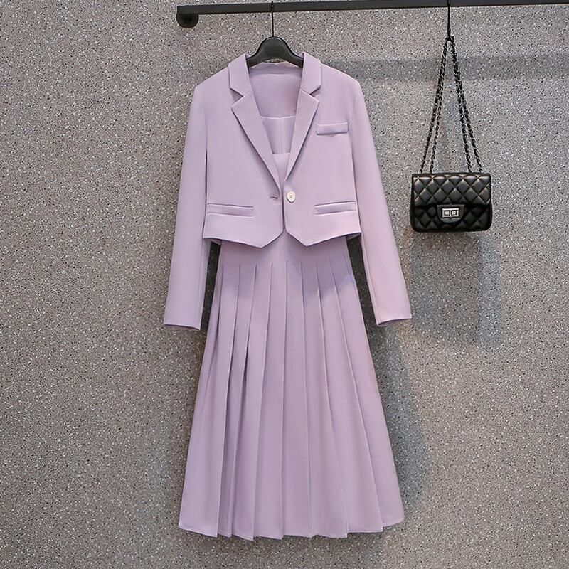 プラスサイズの婦人服2023ファットシスター春の新ファッションスーツジャケットサスペンダースカートニッチライトおなじみのスタイルツーピースセット 大きめサイズ スプリング 春物 8884141995953342