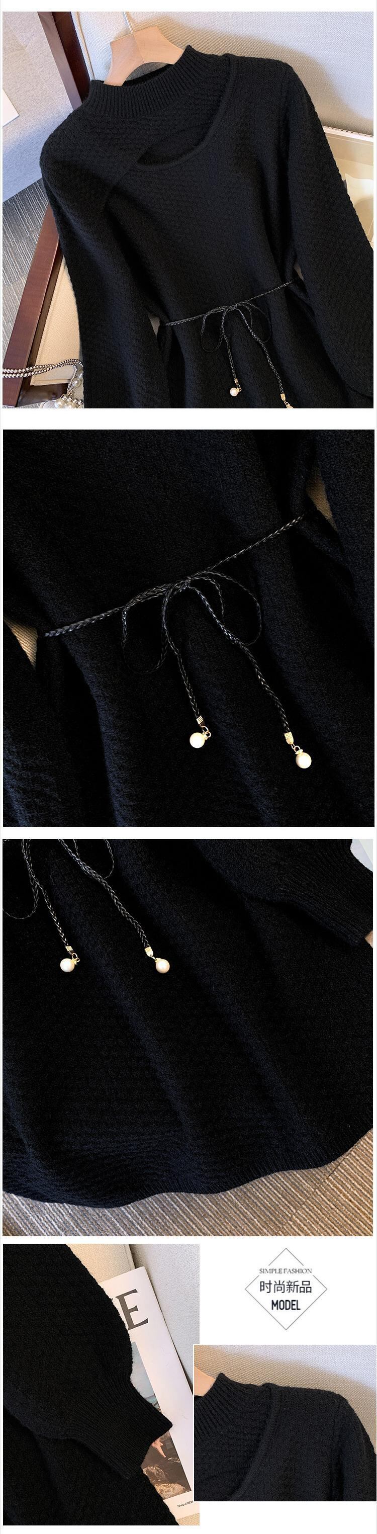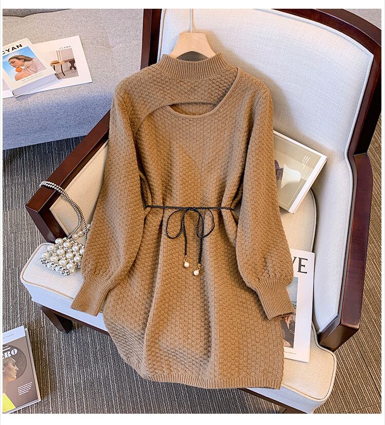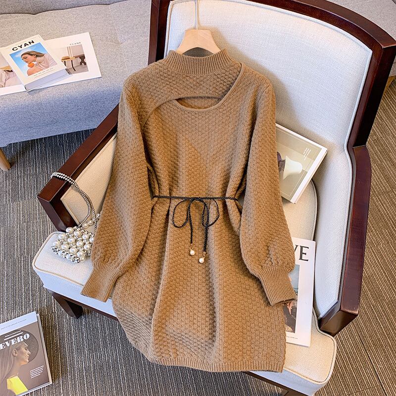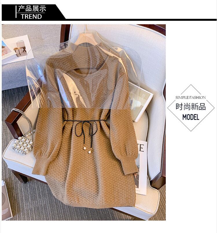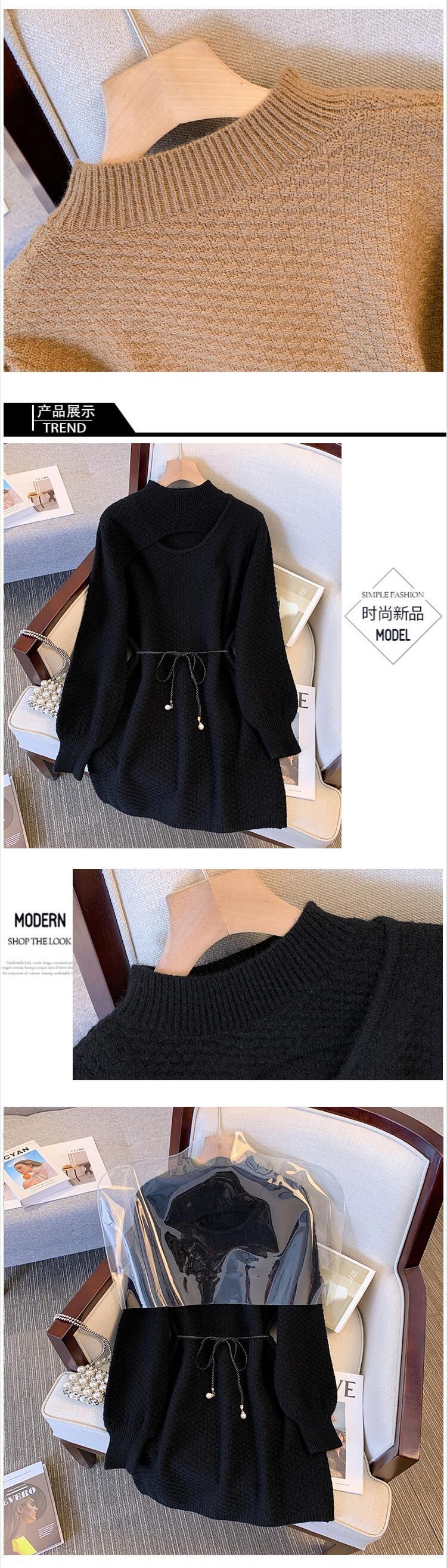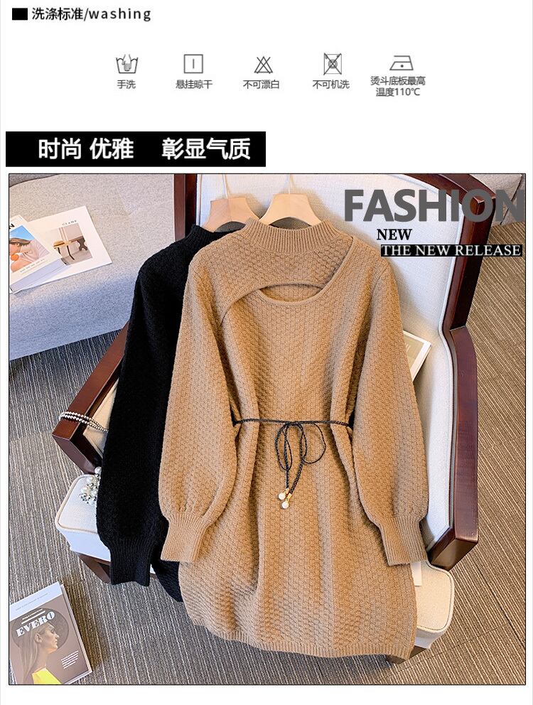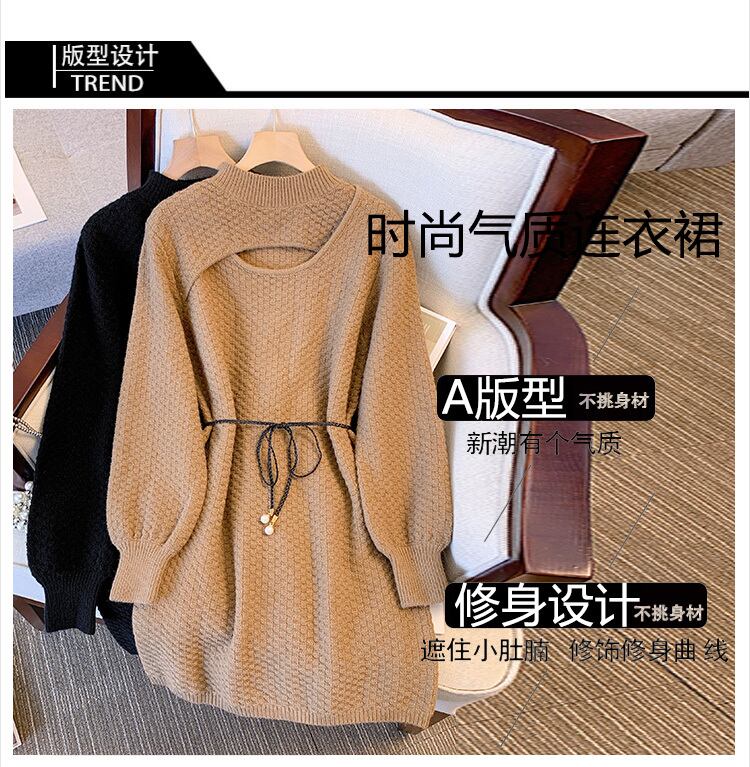 プラスサイズの婦人服 2023 ファットシスター春の新しいウエストライン薄い偽のツーピースニットセーター eign スタイルのドレス 大きめサイズ スプリング 春物 8884188426300053