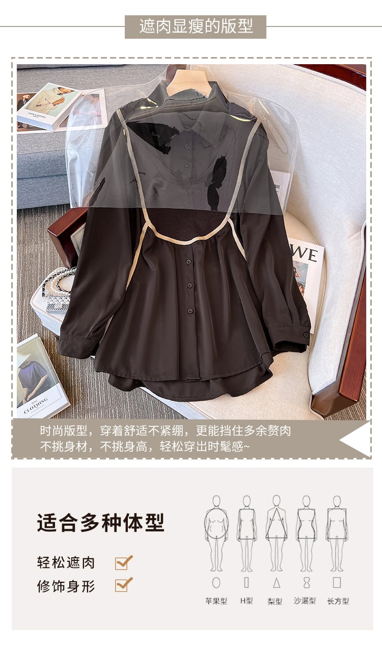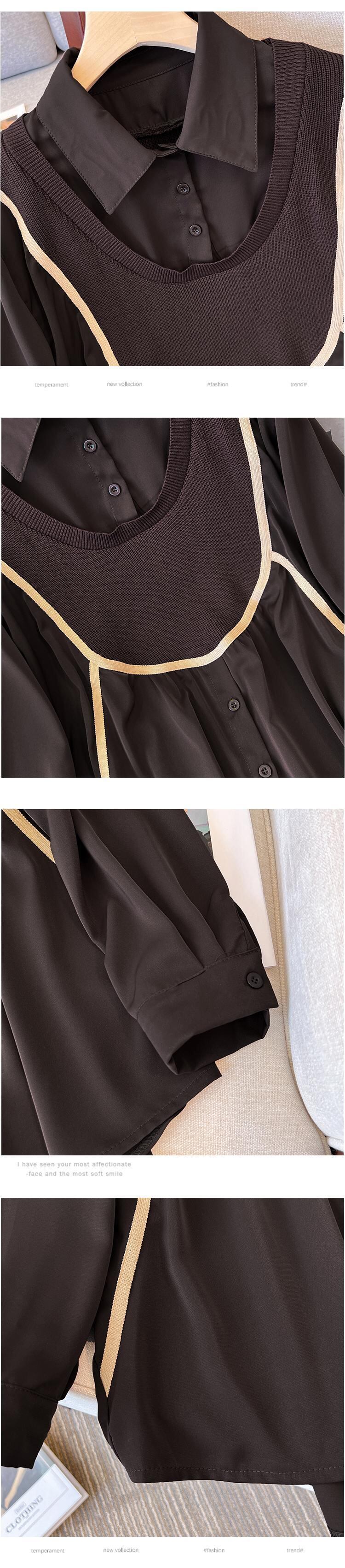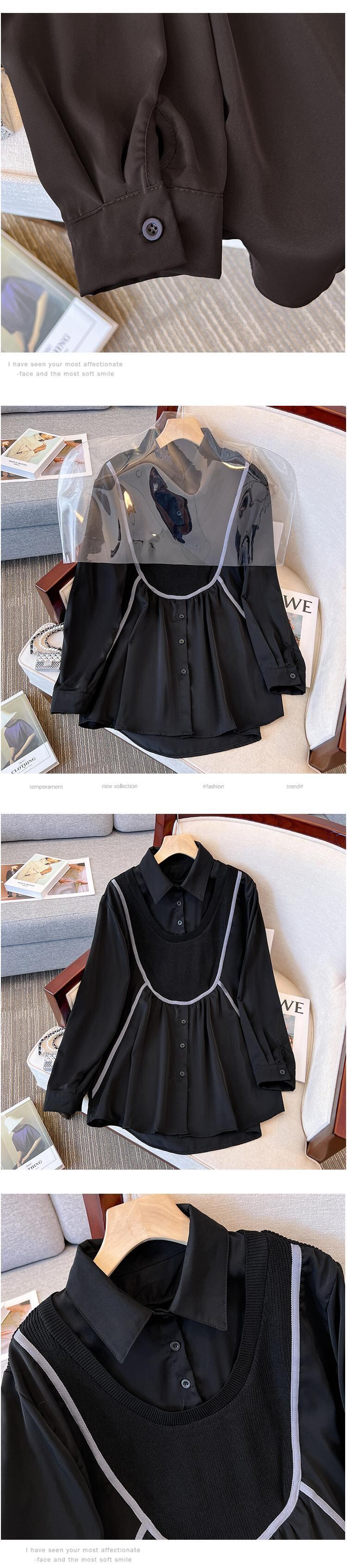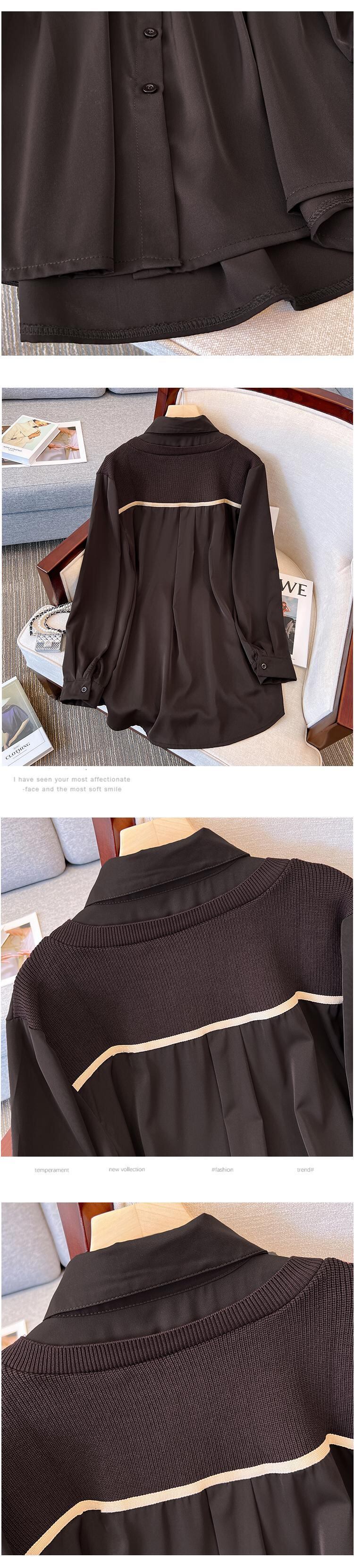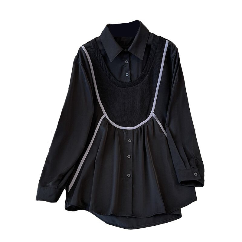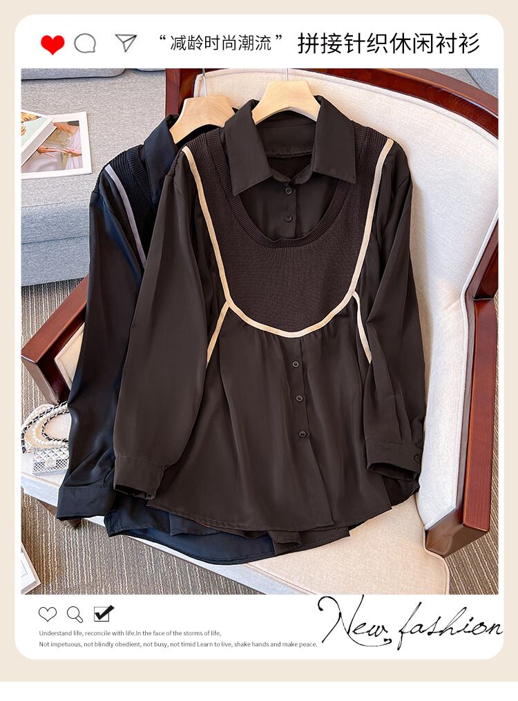 プラスサイズの婦人服 2023 脂肪姉妹春の新長袖シャツスプライシングニット緩い腹カバー薄いトップ女性 ロング 大きめサイズ スプリング 春物 8884111782166396